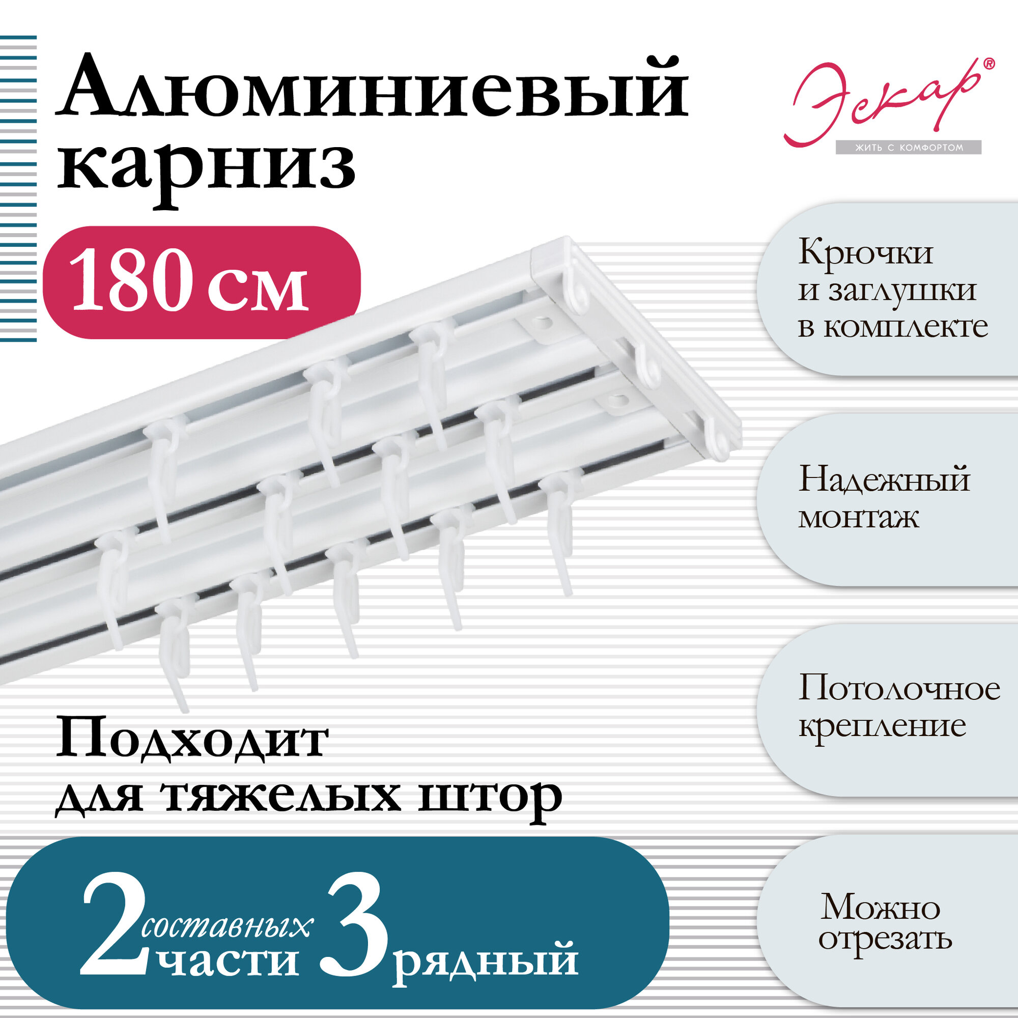 Купить Карниз алюминиевый трехрядный, "Эскар", составной (2 части), длина 180 см, белый