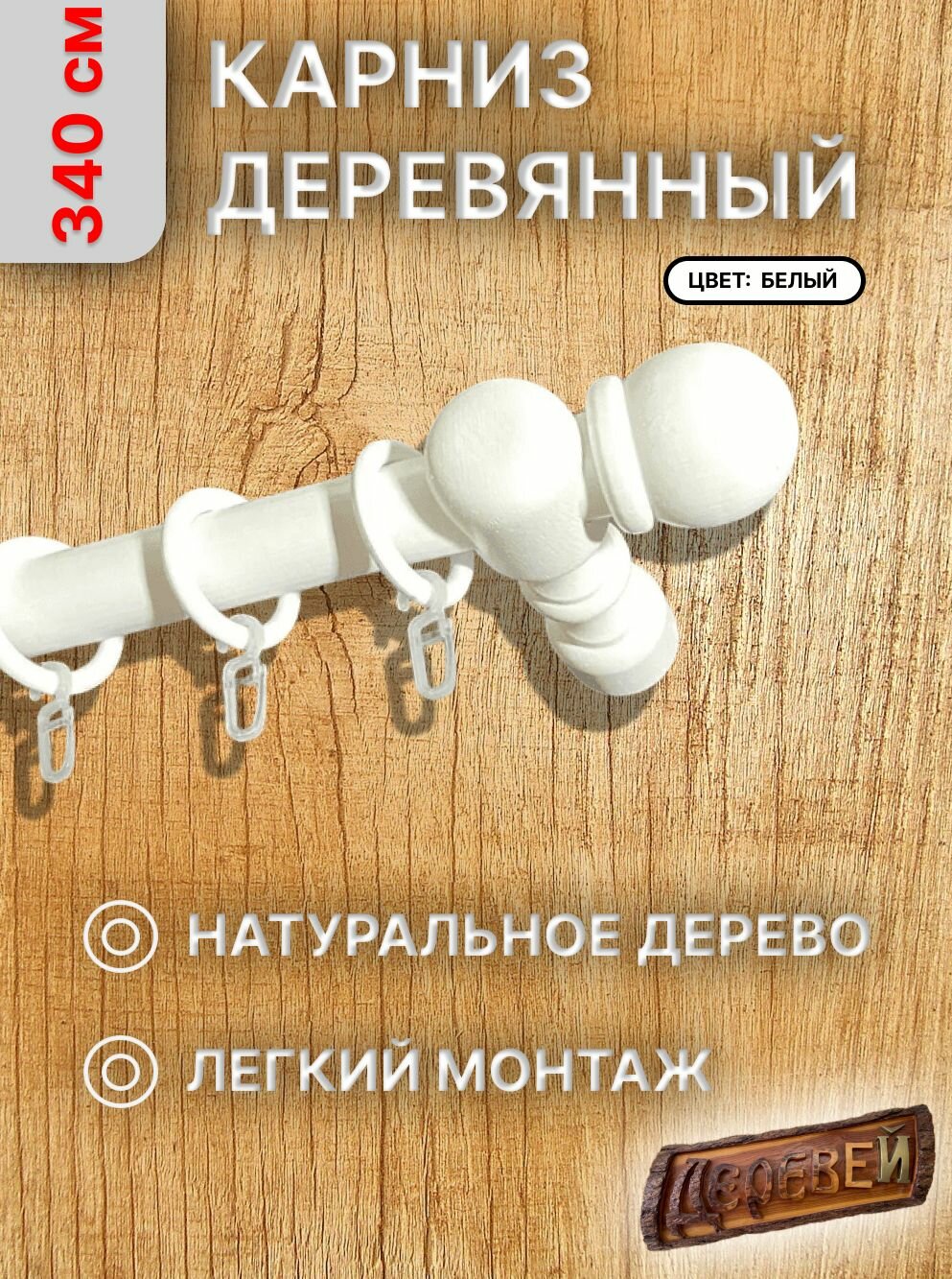 Кольца для карниза (дерево) с крючками на карниз д 28 мм-20шт