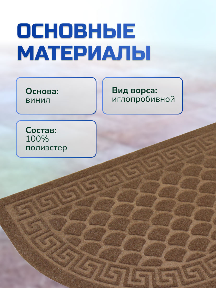 Коврик влаговпитывающий, с тиснением, 60х90 см, ХОЛЛ, полукруг, коричневый, In'Loran интересное: