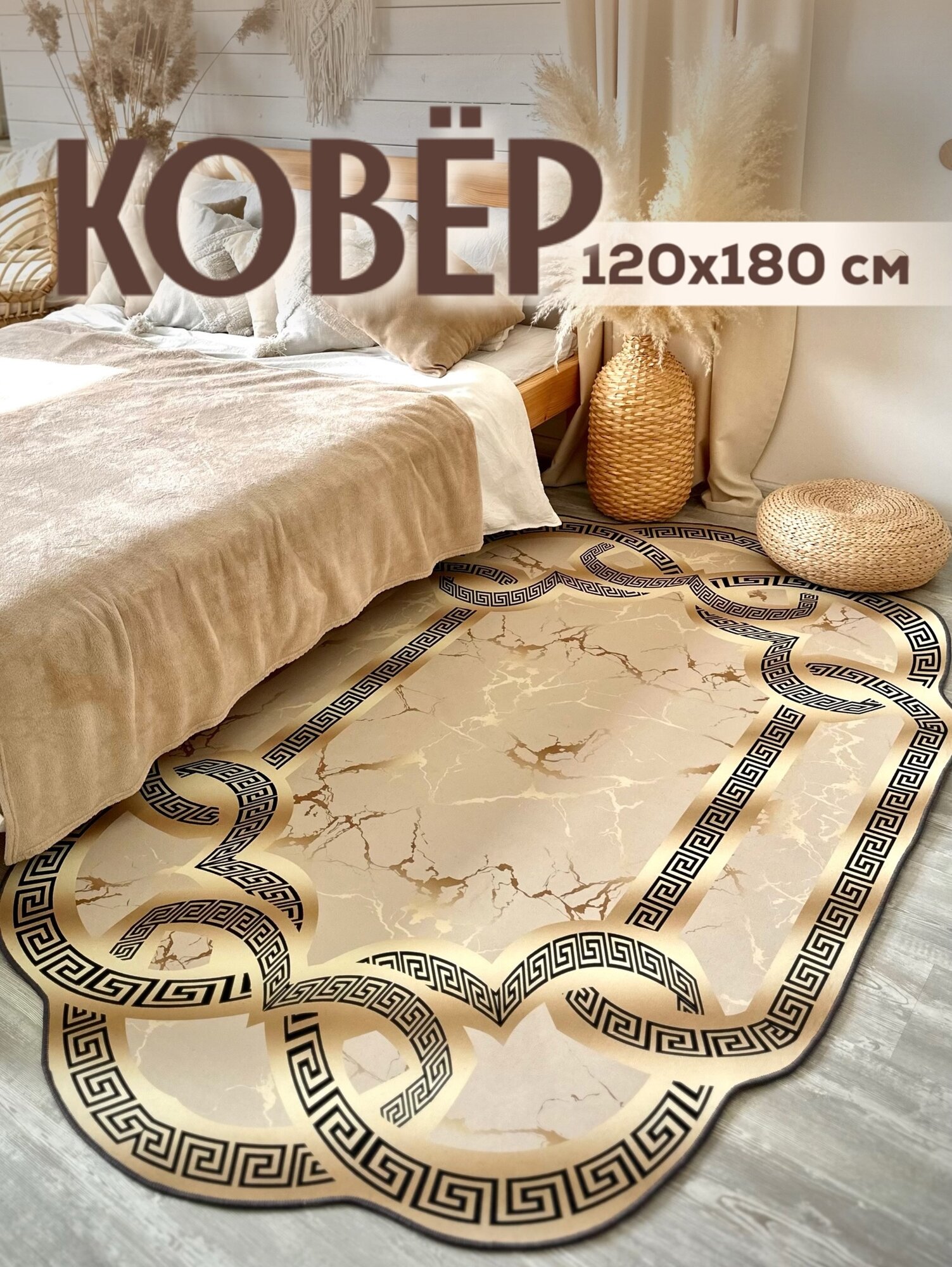 Ковер с коротким ворсом на пол, в гостиную, прикроватный коврик в спальню, 120*180см/Like_house
