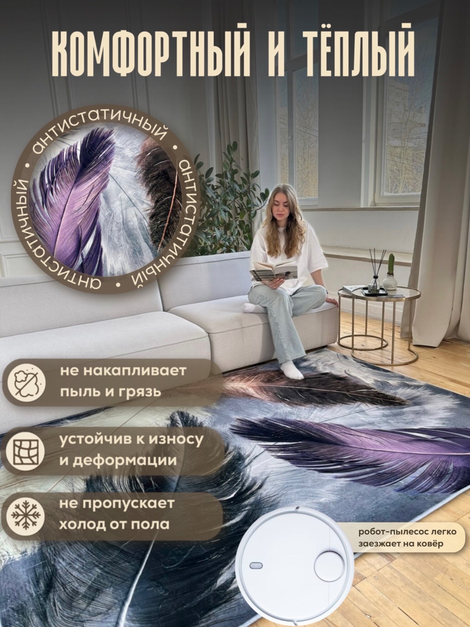 Ковер на пол с ворсом, 160*230см/Like_house