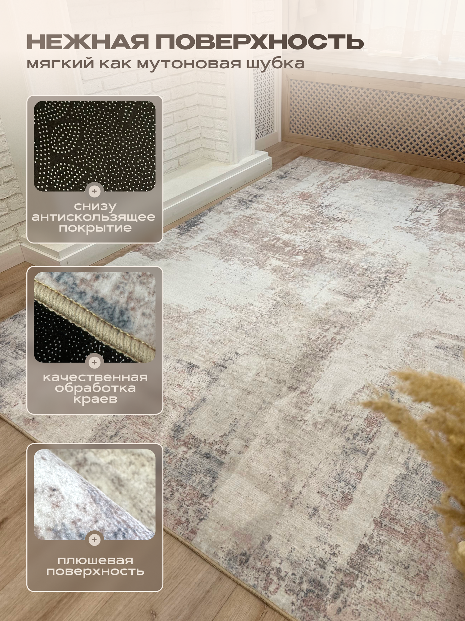 Ковер на пол плюшевый, в гостиную, спальню, 140*200см/Like_house