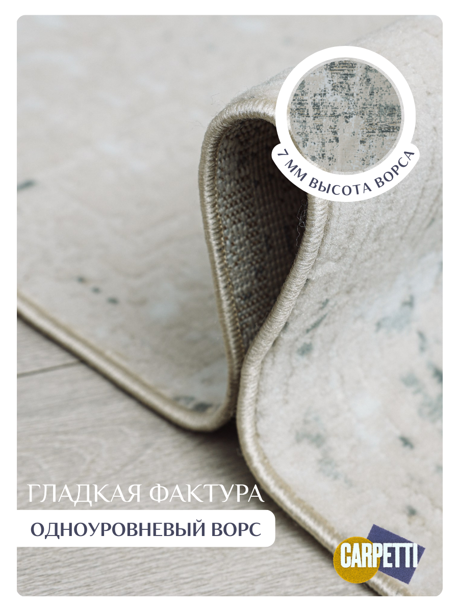 Ковер комнатный гипоаллергенный, износоустойчивый, 160х230 см, бежевый