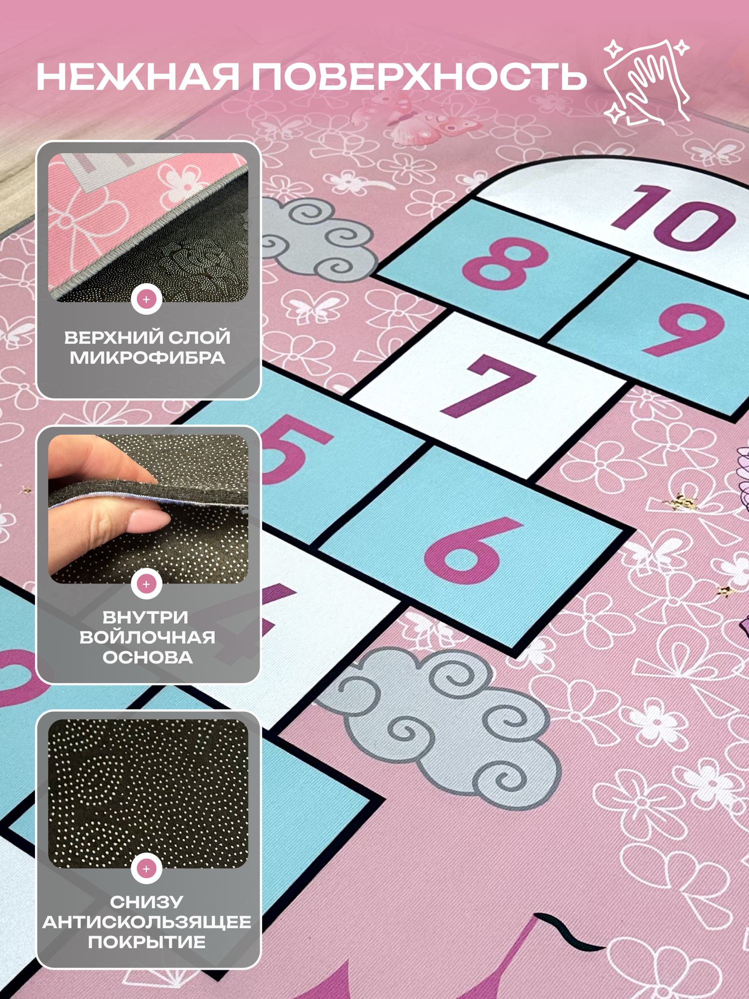 Ковер в детскую комнату для девочки , детский коврик для игр "Классики", 160 на 230см. Like_house