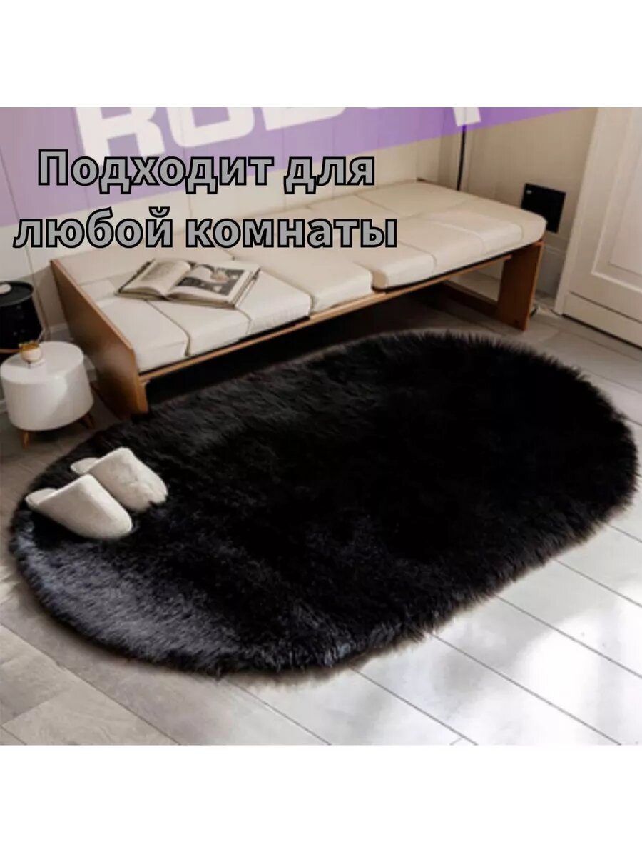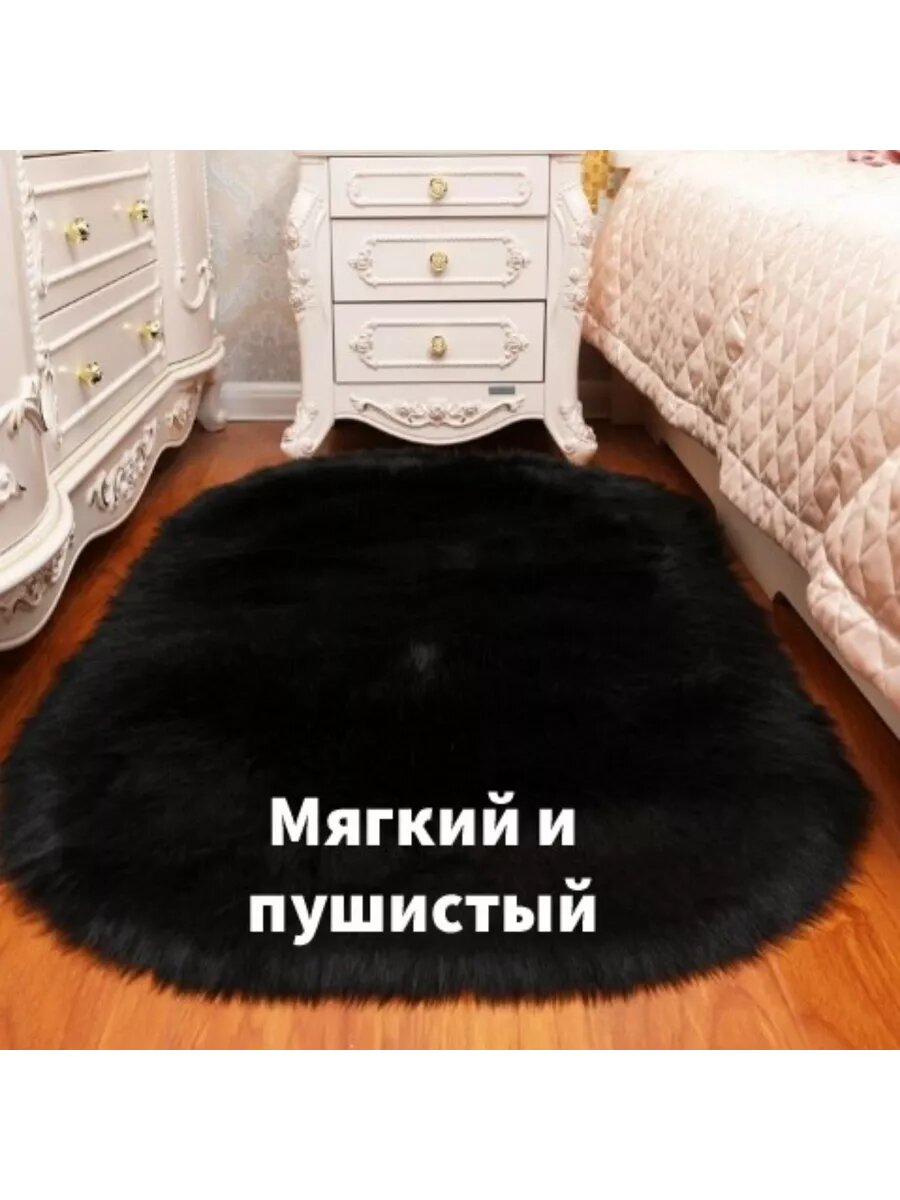 СохранитьКоврик RiAnt "Меховой", овальный, черный, противоскользящий, 60x120см интересное: