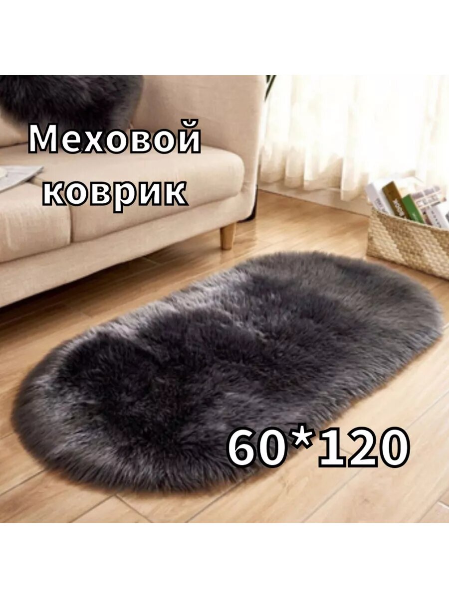 Коврик RiAnt, искусственный мех, прямоугольная форма, противоскользящий, 60 см x 120 см