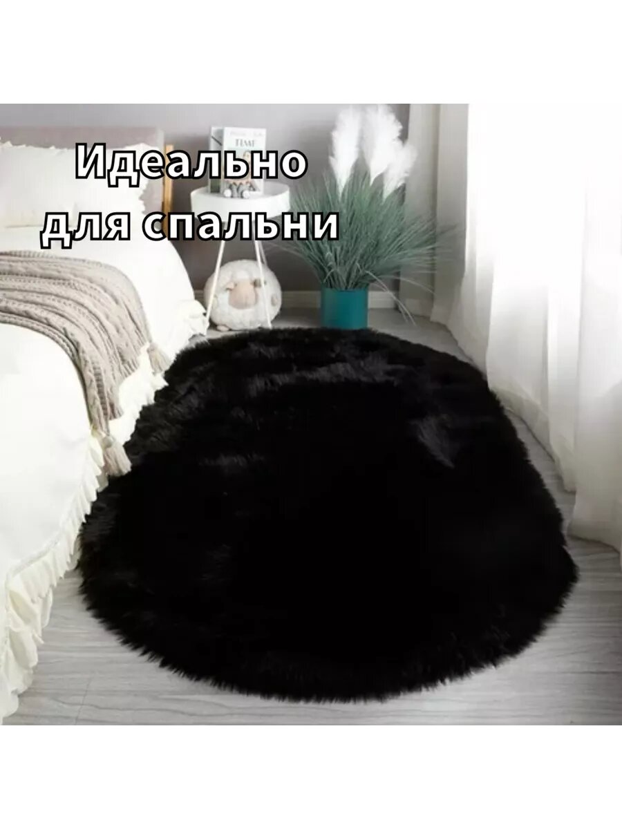 Купить Коврик RiAnt "Меховой", овальный, черный, противоскользящий, 60x120см