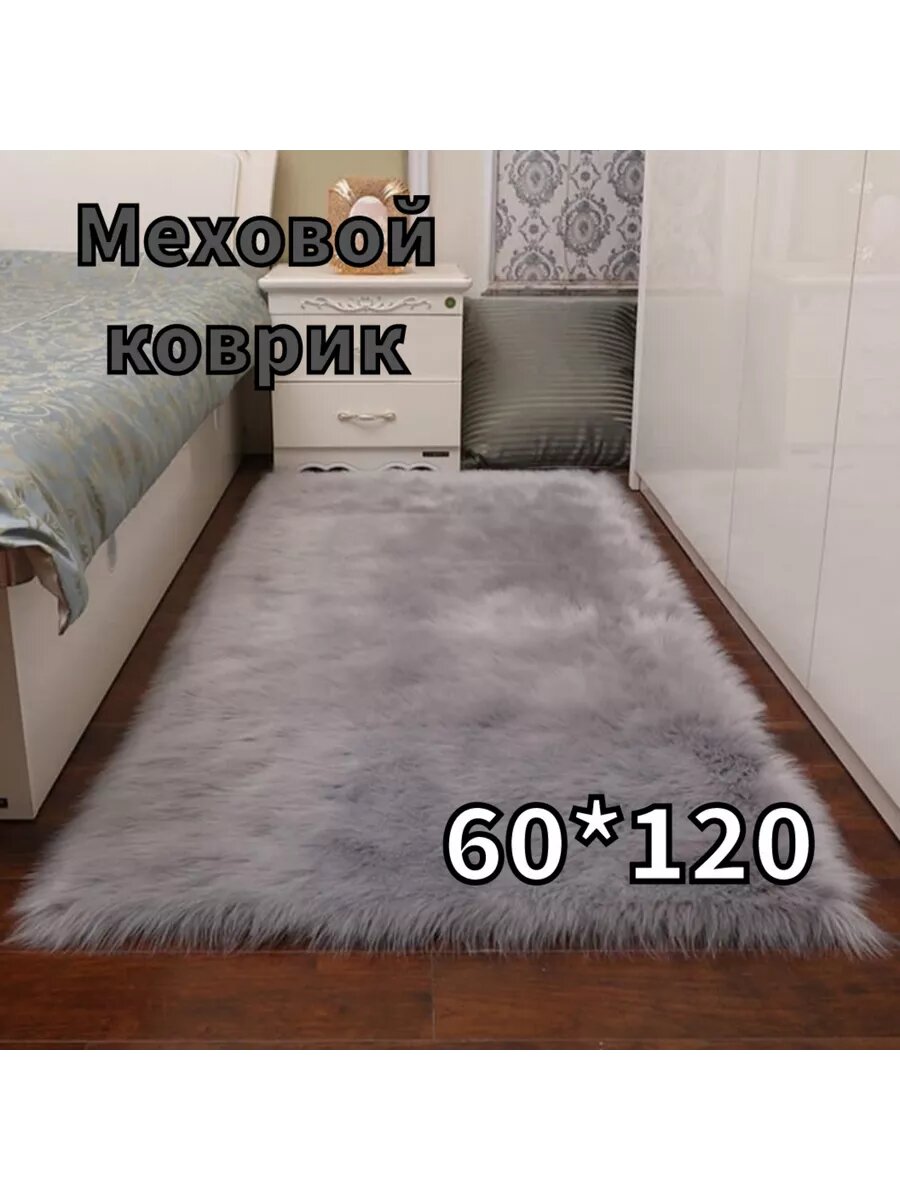 Коврик RiAnt, искусственный мех, прямоугольная форма, противоскользящий, 60 см x 120 см