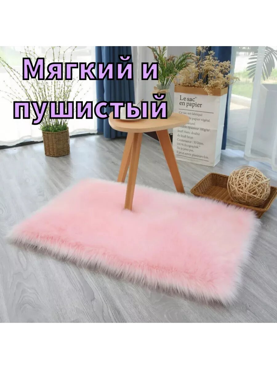 СохранитьКоврик RiAnt, искусственный мех/замша, прямоугольный, светло-розовый, 0,6x1,2 м интересное:
