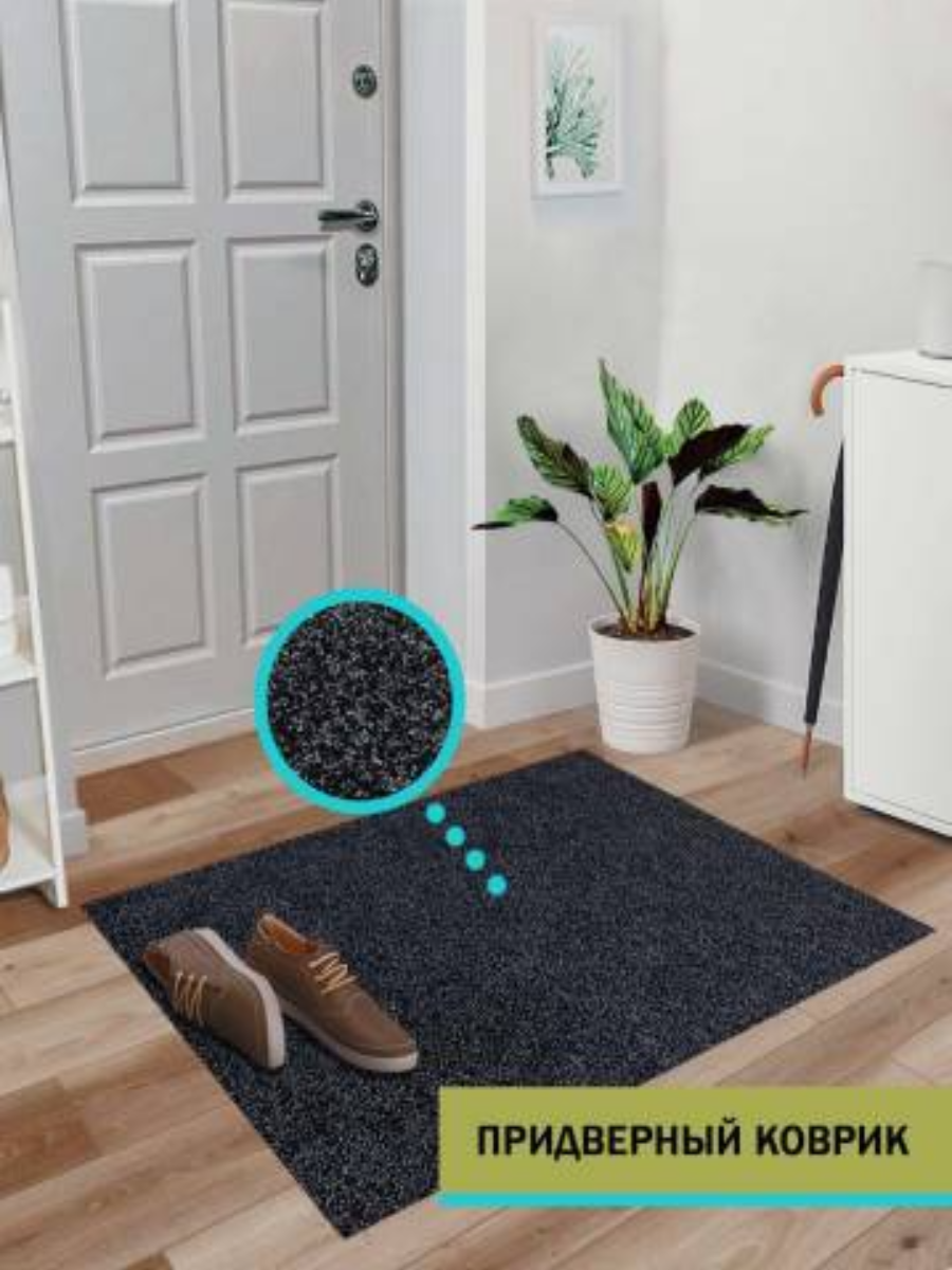 Коврик придверный VaregeM Carpet World, 0,8x1,0м, гипоаллергенный, чёрный