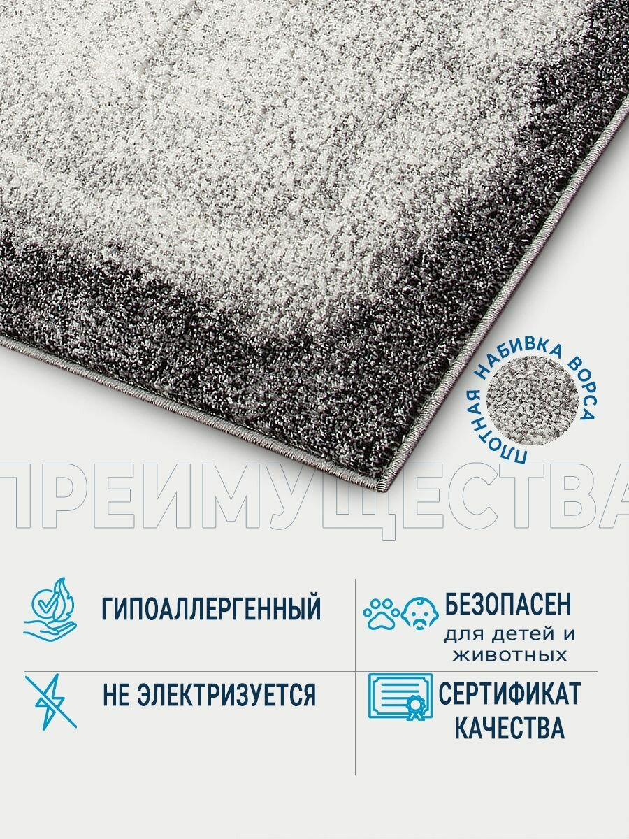 Ковер MERINO 120х180 серый на пол / Современный ковер с ворсом в спальню