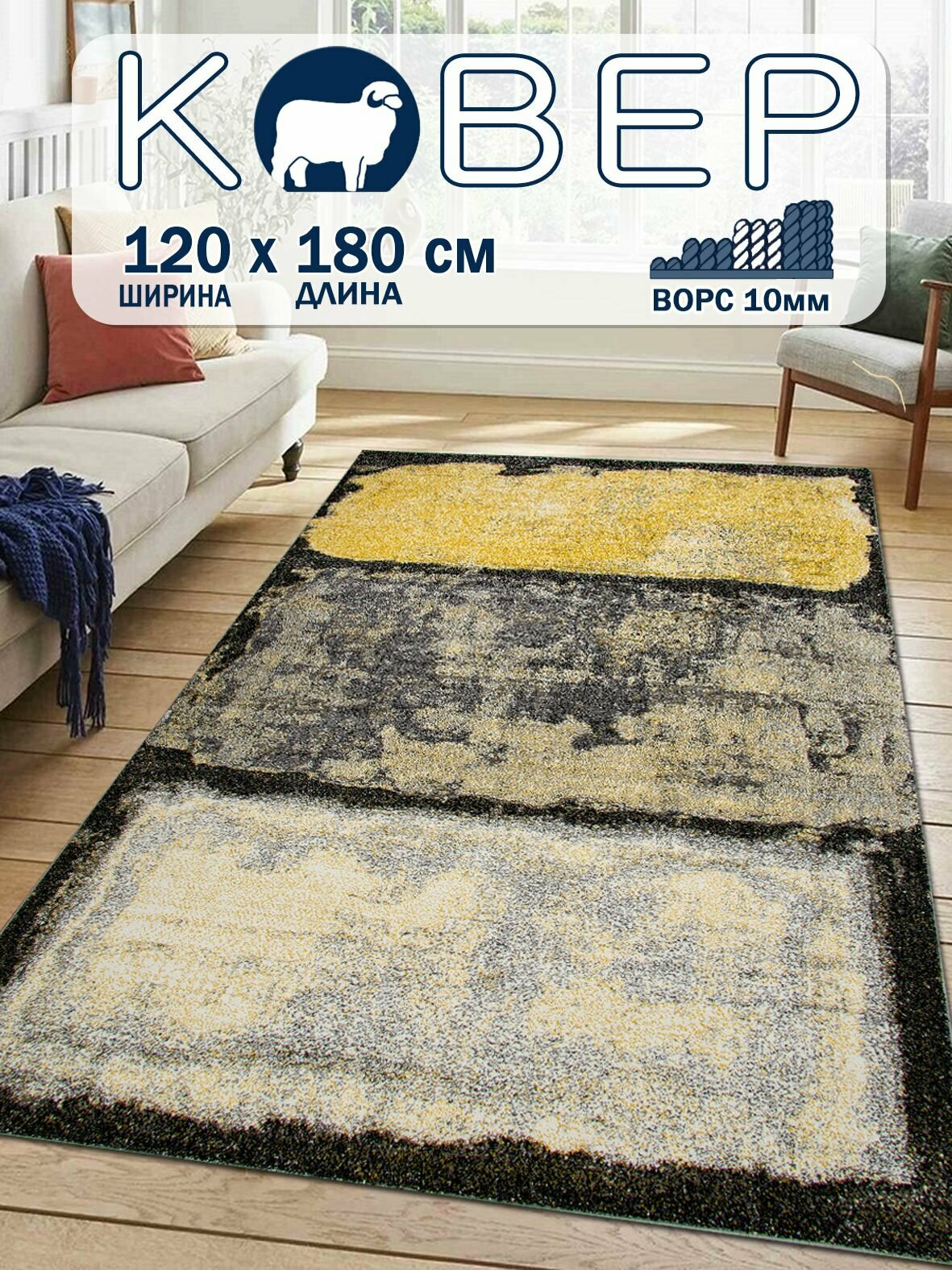 СохранитьКовер MERINO 120х180 желтый на пол / Современный ковер с ворсом в спальню интересное: