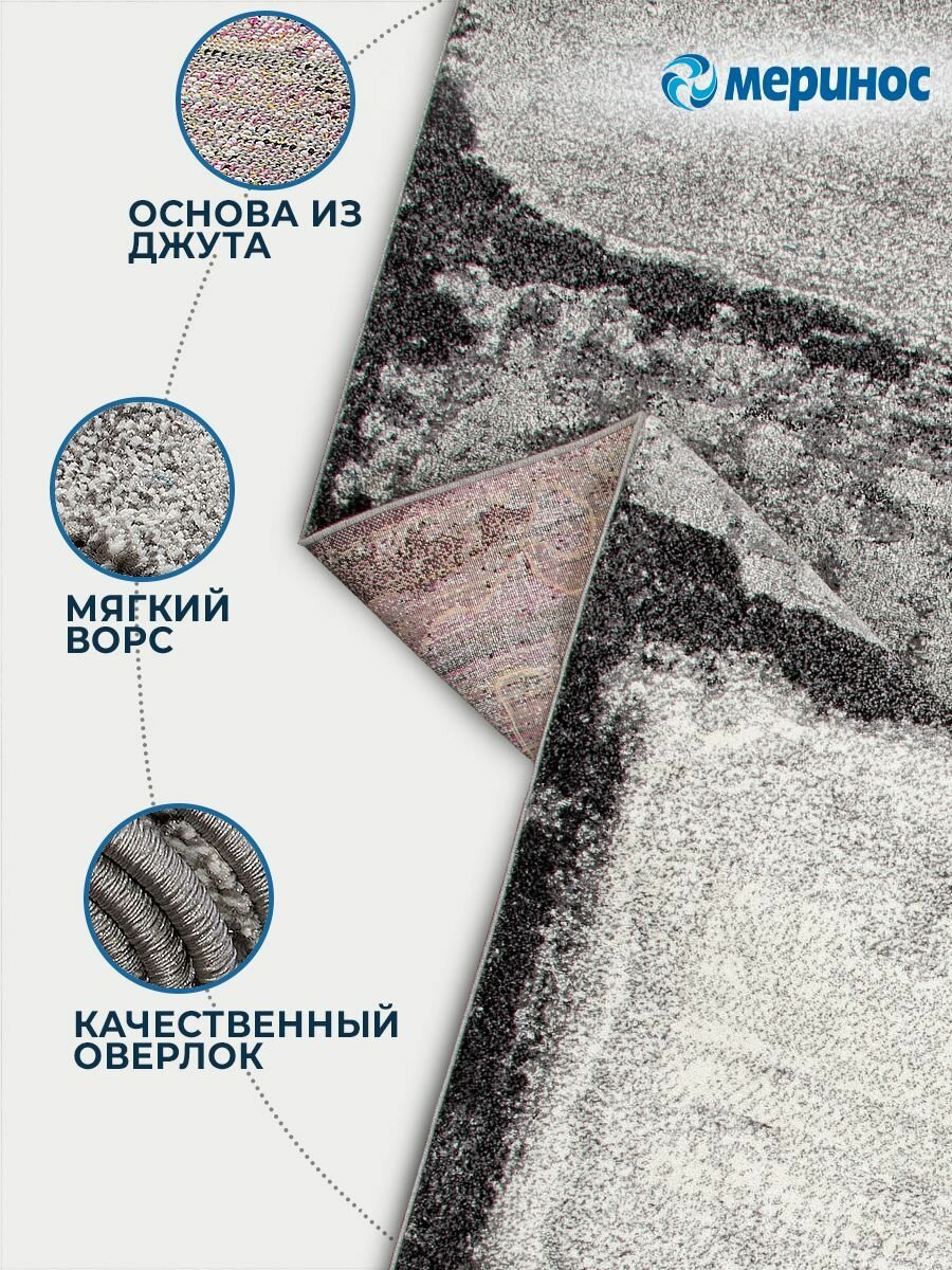 Ковер MERINO 160х230 серый на пол / Современный ковер с ворсом в спальню