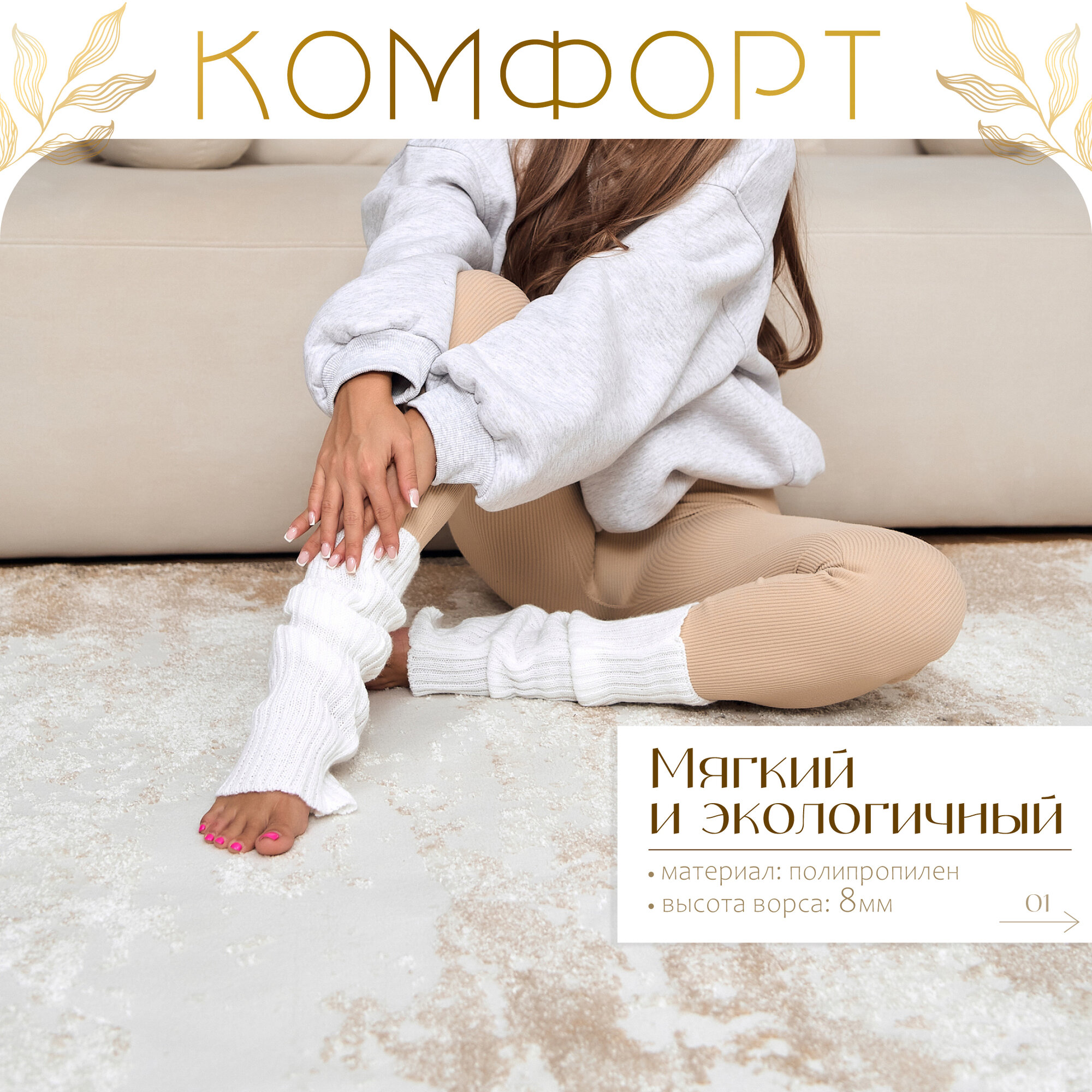 Ковер MERINO Naturel , 150х300 см прямоугольный, бежевый-кремовый, абстракция