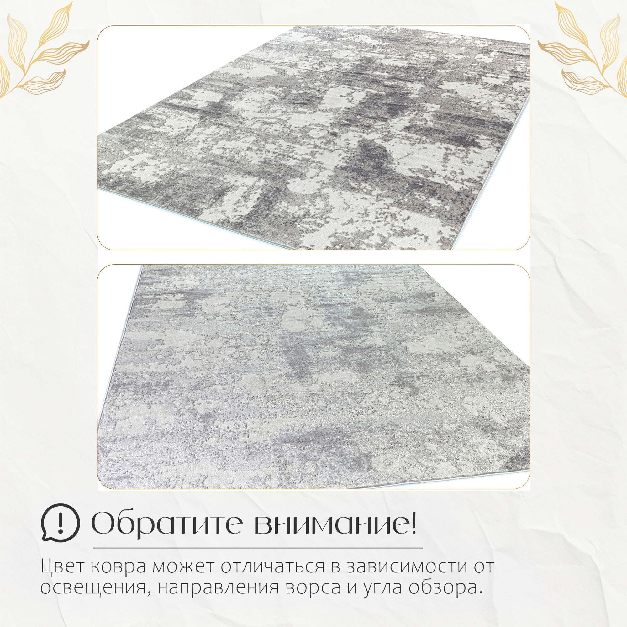 Ковер MERINO 120х180 серый на пол / Современный ковер с ворсом в спальню