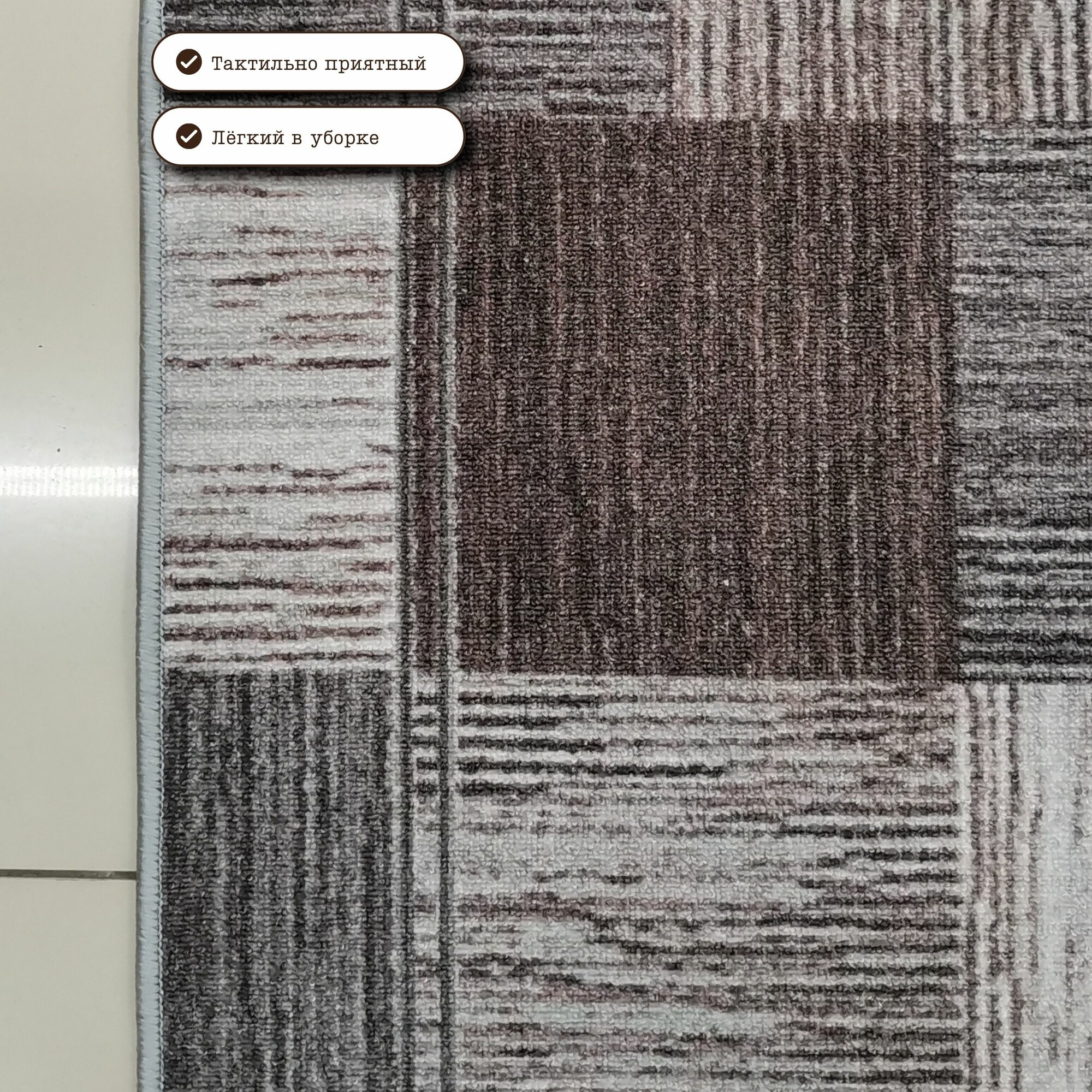 СохранитьКовровая дорожка на отрез без ворса "Плитка" коричнево-серая 80х150 см + оверлок торцов интересное:
