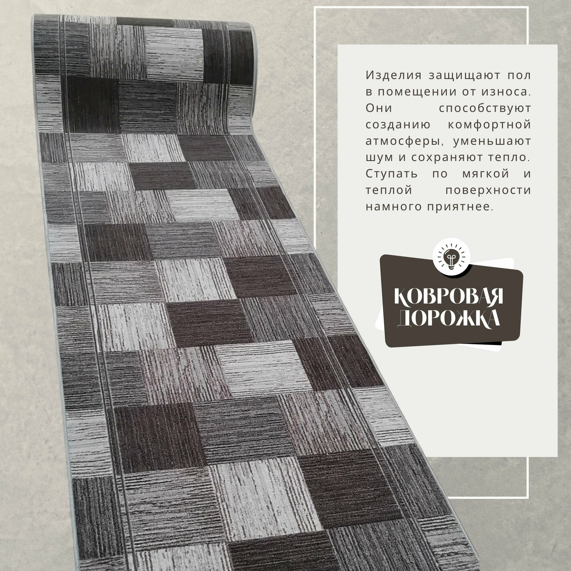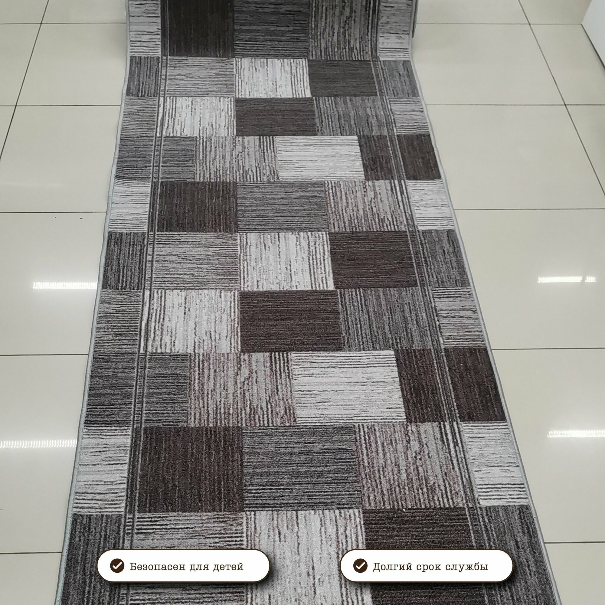 СохранитьКовровая дорожка на отрез без ворса "Плитка" коричнево-серая 100х750 см + оверлок торцов интересное: