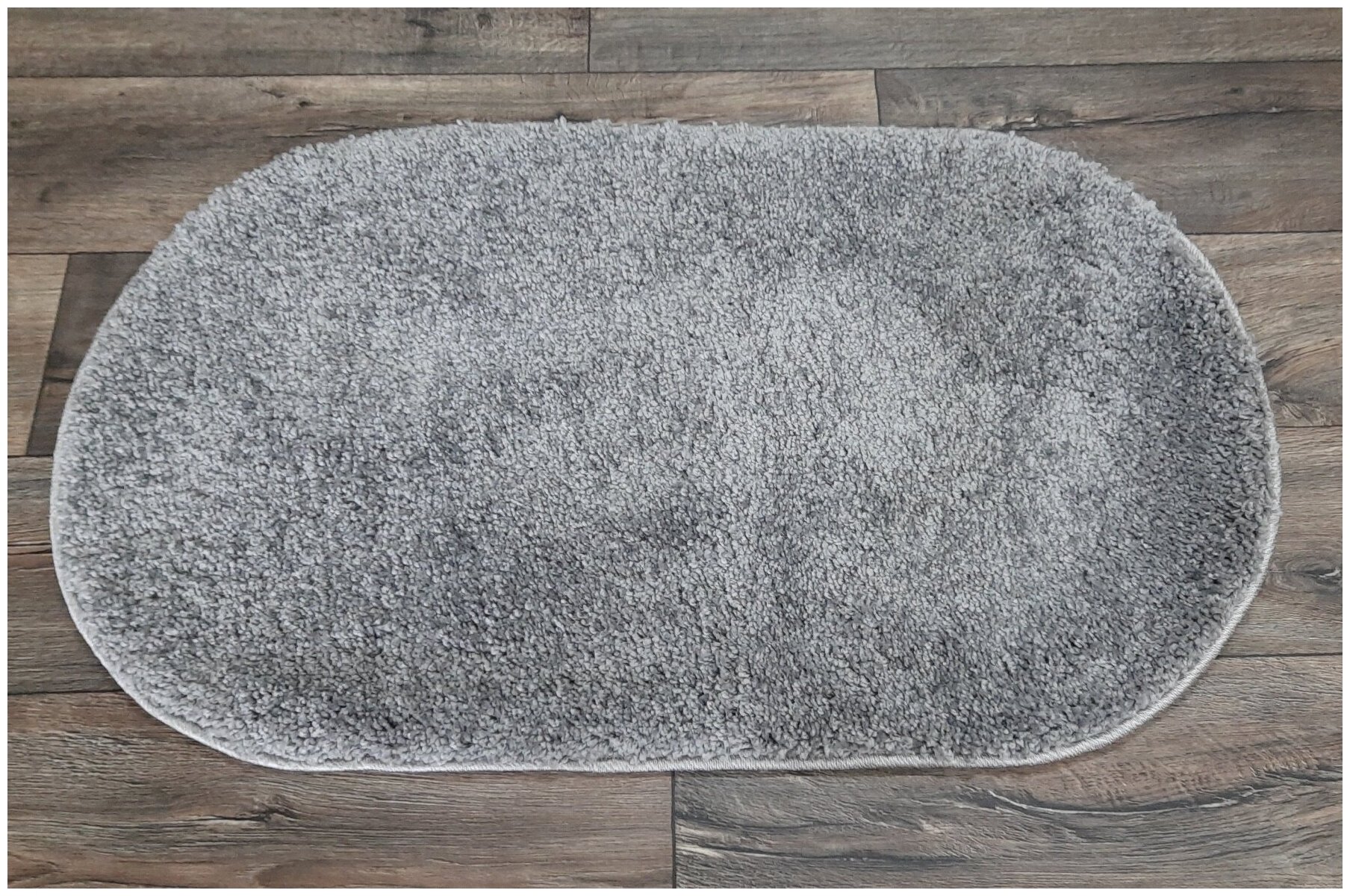 Ковер на пол овальный пушистый, прикроватный, в спальню, гостиную, детскую, на кухню, серый, 0.8*1.5 м
