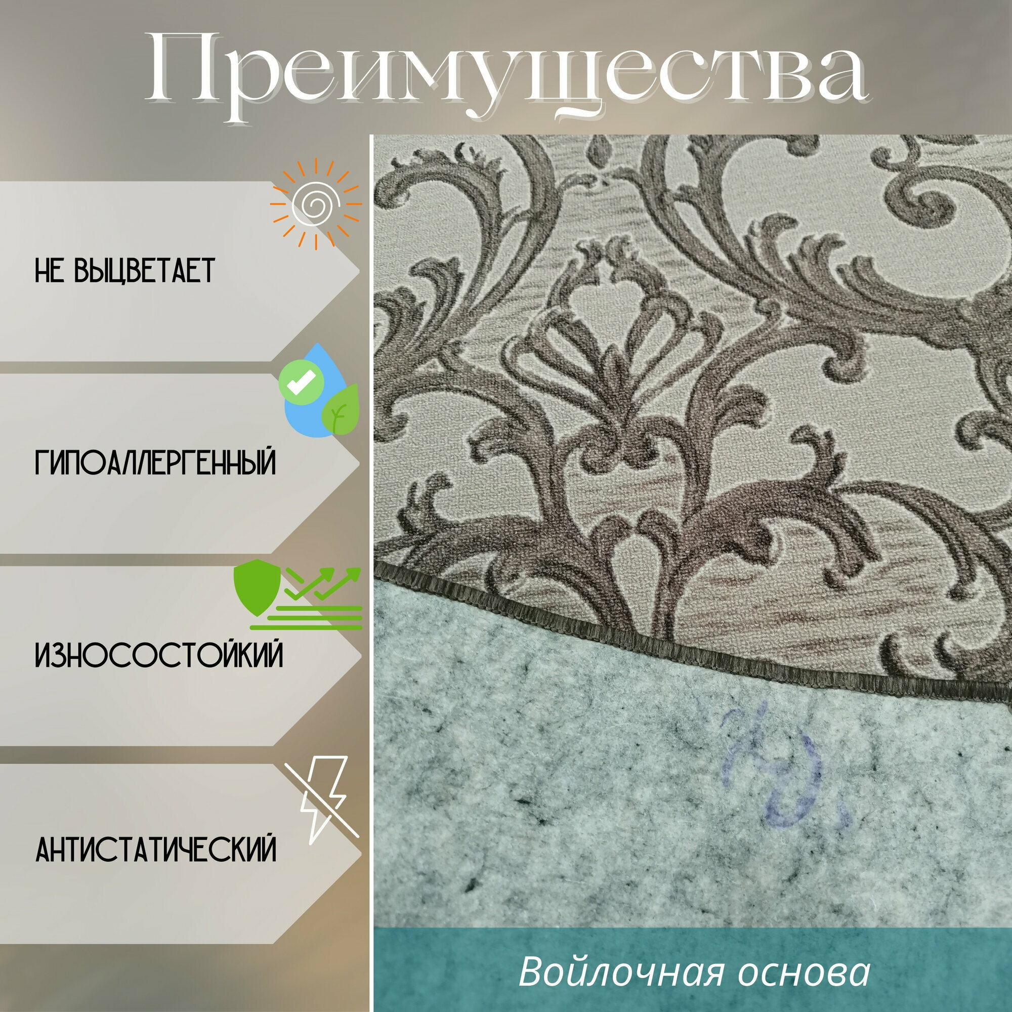 Ковровая дорожка на отрез без ворса "Прованс" 150х150 см + оверлок торцов