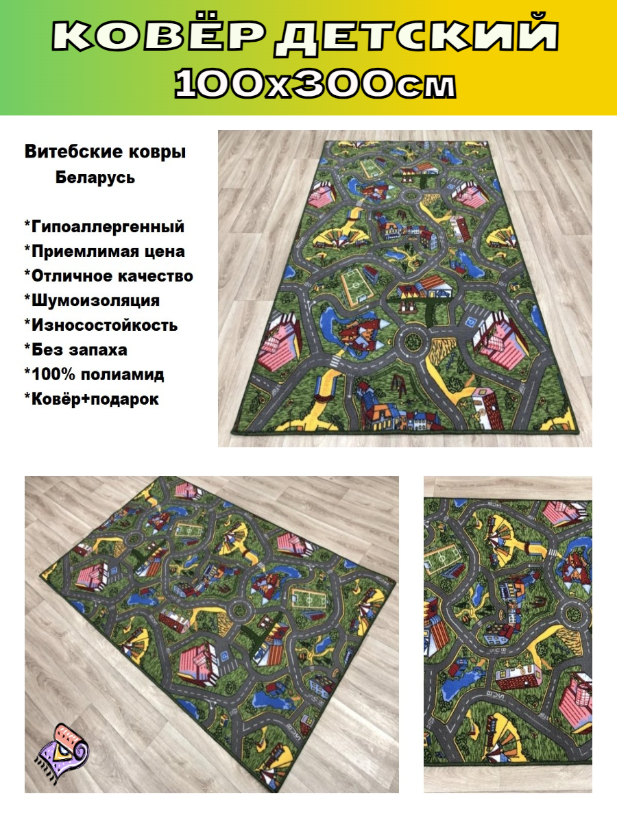 Ковёр для детской, безворсовый, CarpetWorld "Городок" , прямоугольный, полиамид, микрофибра, 100x350см.