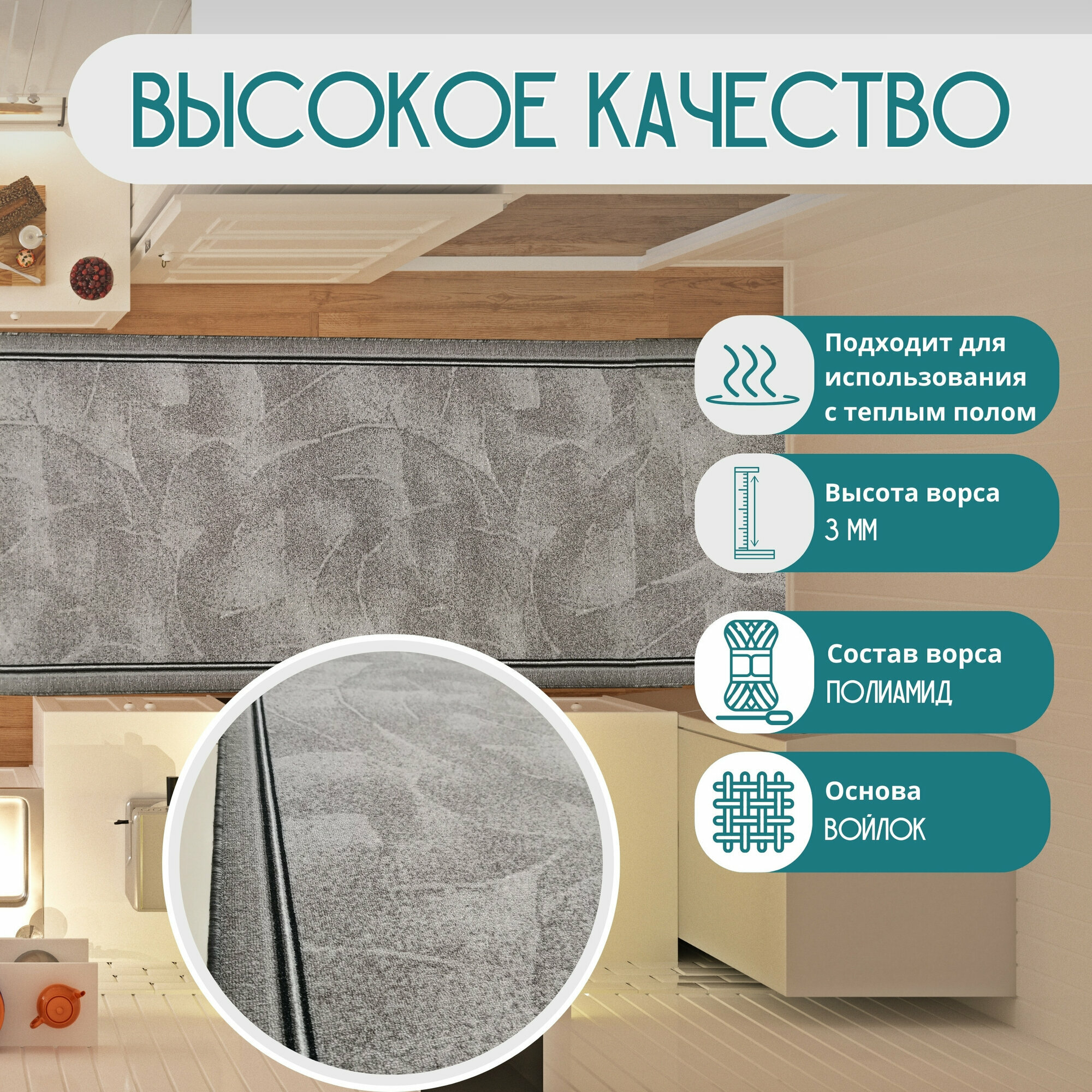 СохранитьКовровая дорожка на отрез без ворса "Серый Туман" 150х300 см + оверлок торцов интересное: