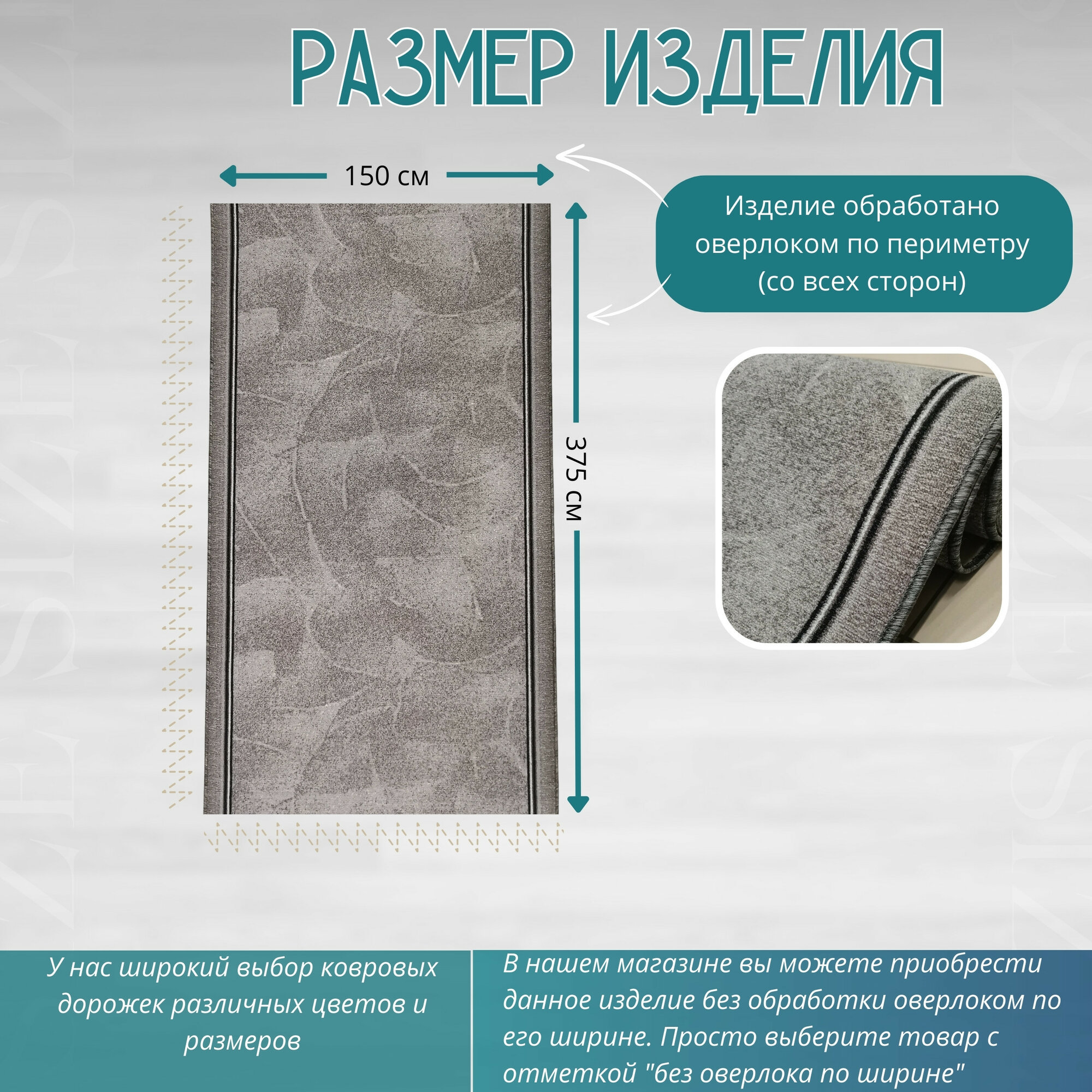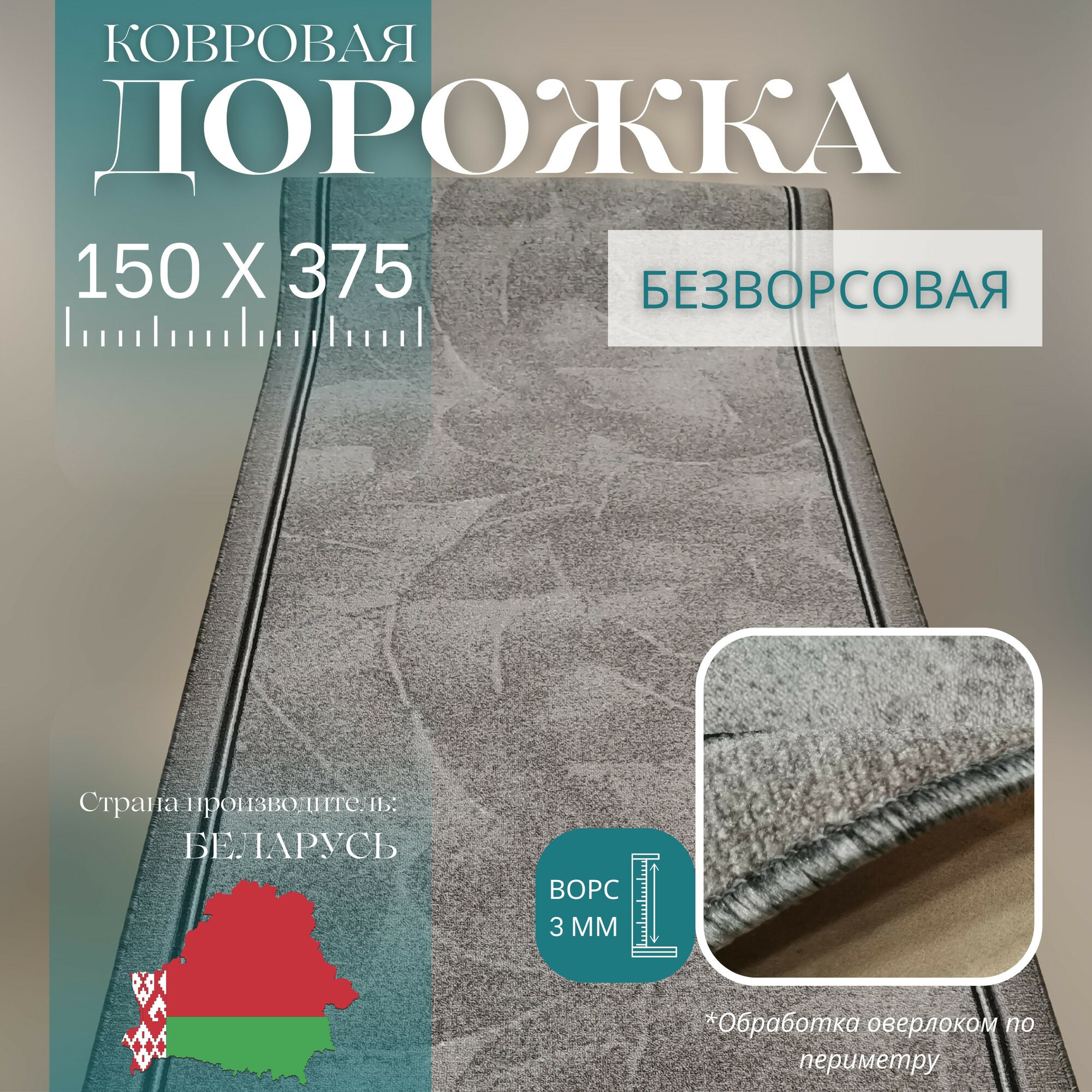 Ковровая дорожка на отрез без ворса "Серый Туман" 150х425 см + оверлок торцов