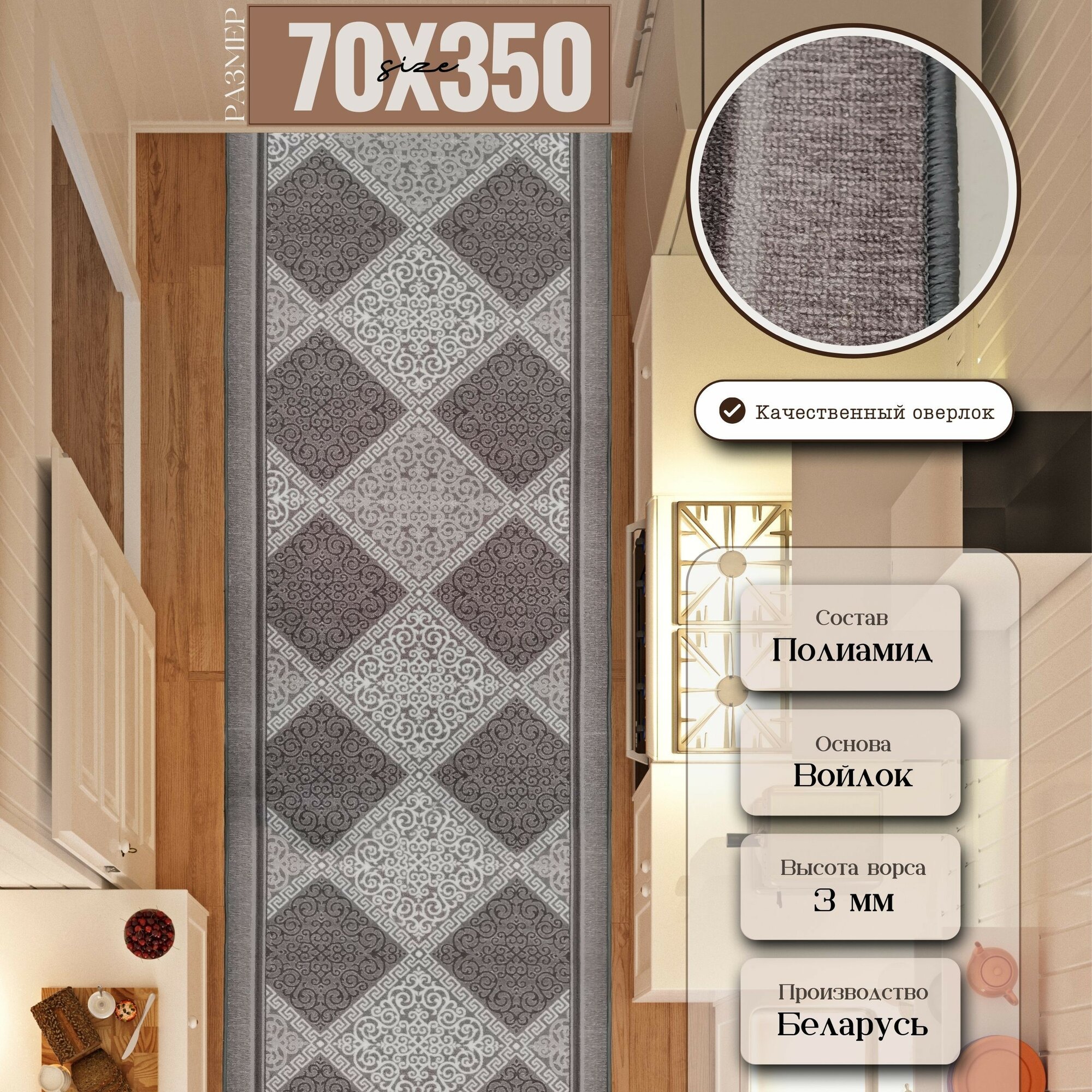 Ковровая дорожка на отрез без ворса "Каскад" 70х250 см + оверлок торцов