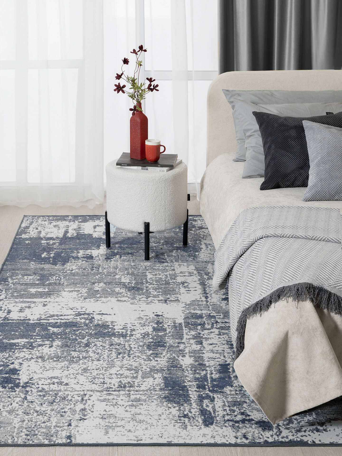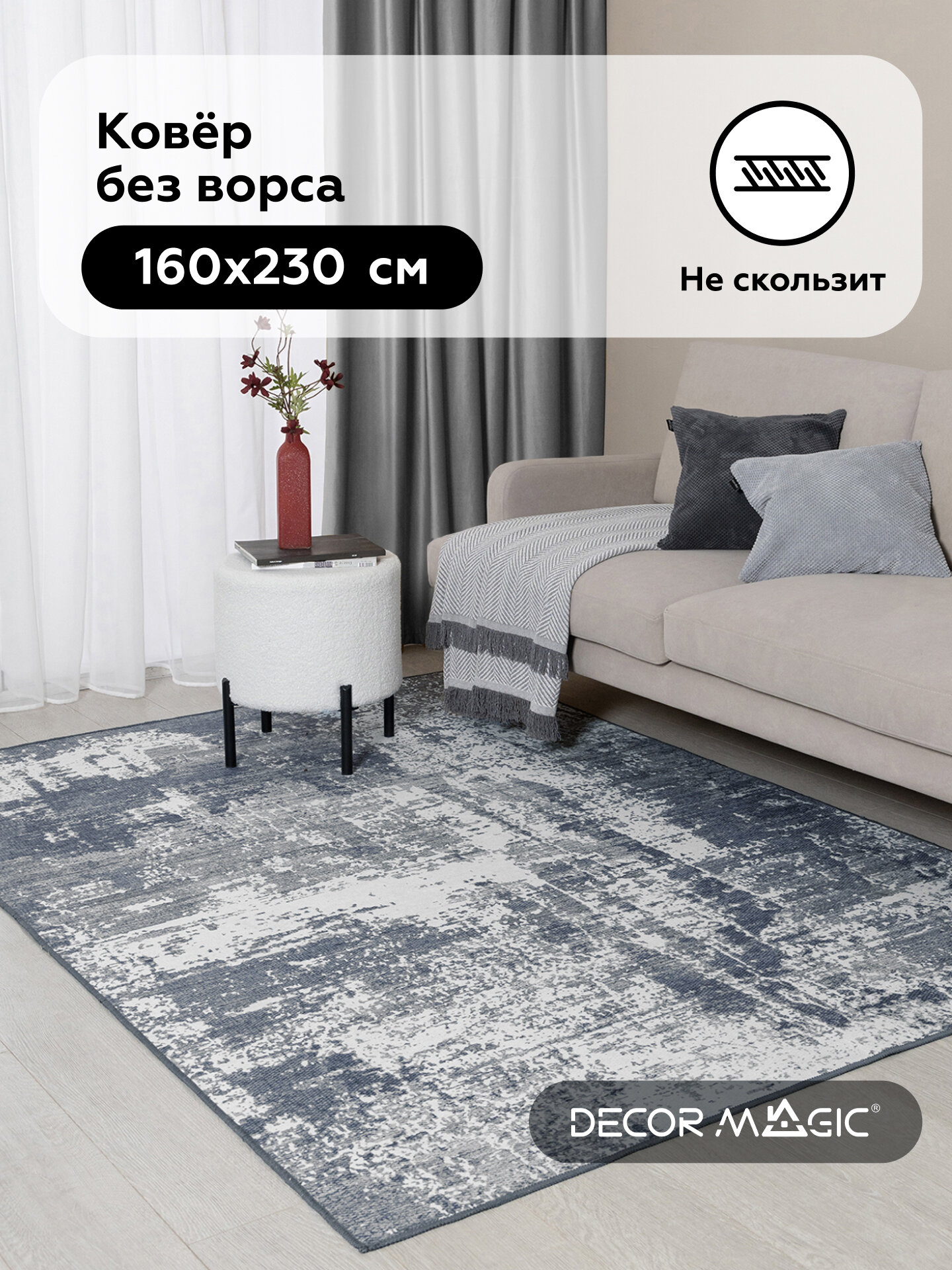 Безворсовый , противоскользящий коврик CarpetWorld "Мрамор" , полипропилен , микрофибра , прямоугольный , 100x60см.