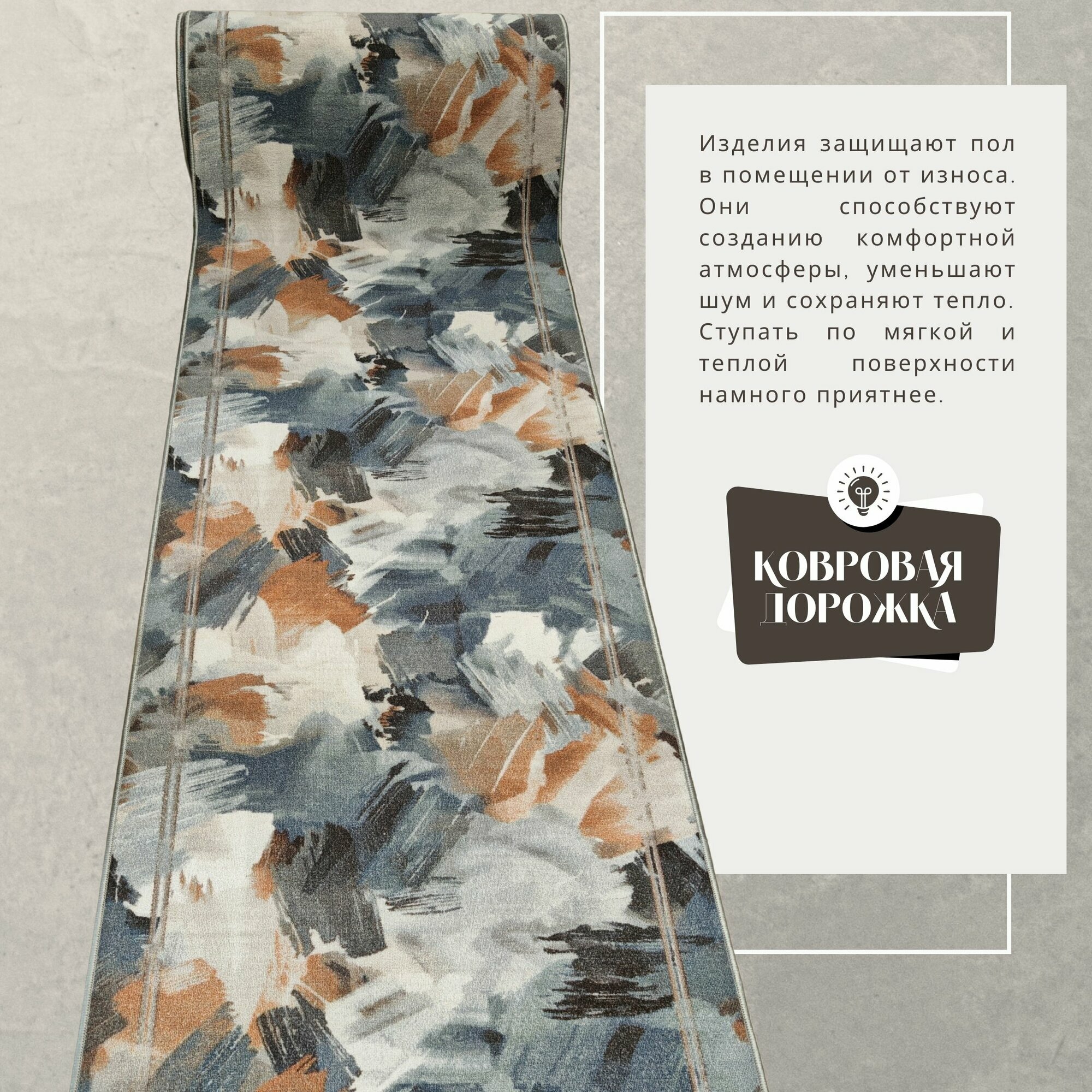 Ковровая дорожка на отрез без ворса "Акварель" 80х550 см + оверлок торцов