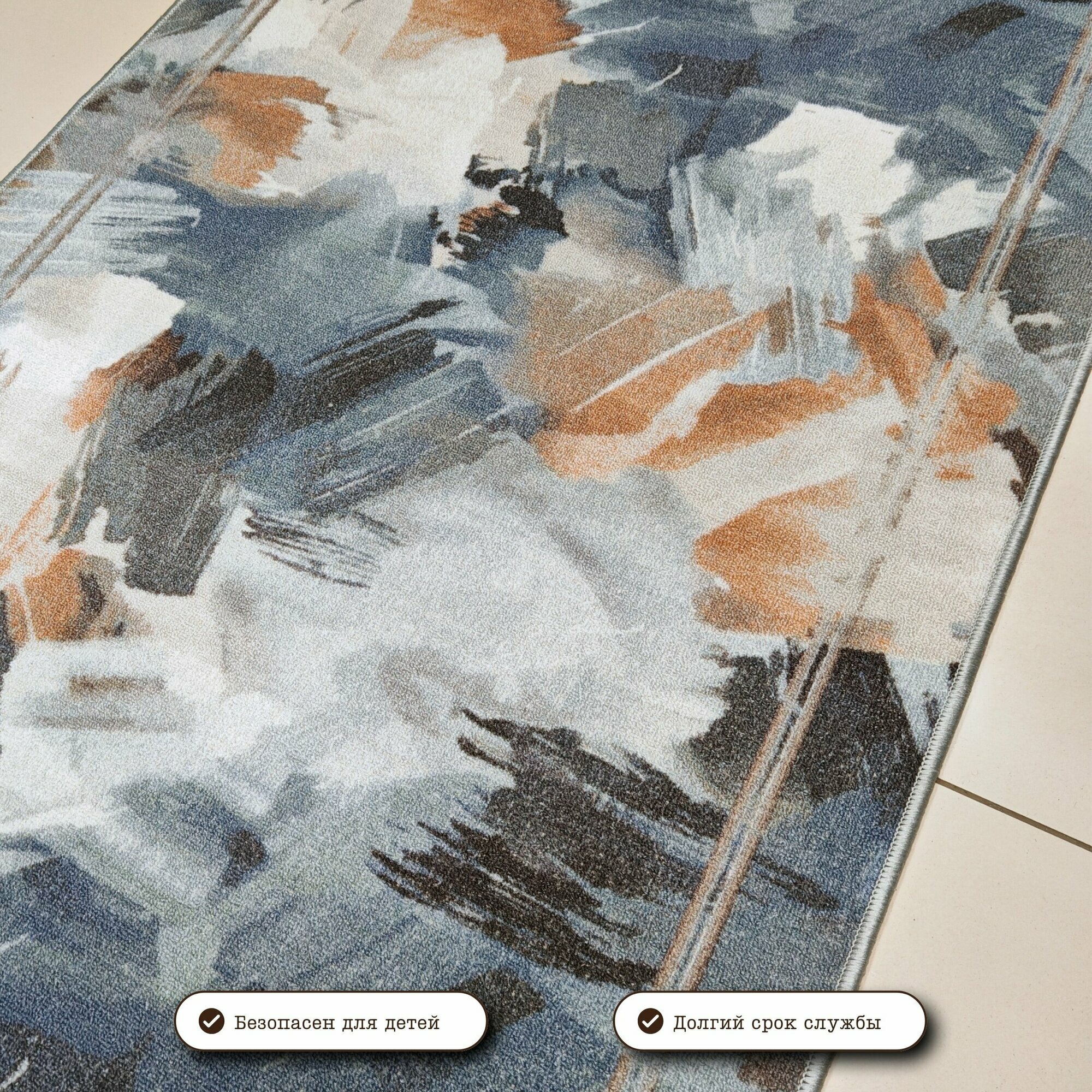 Ковровая дорожка на отрез без ворса "Акварель" 80х175 см + оверлок торцов