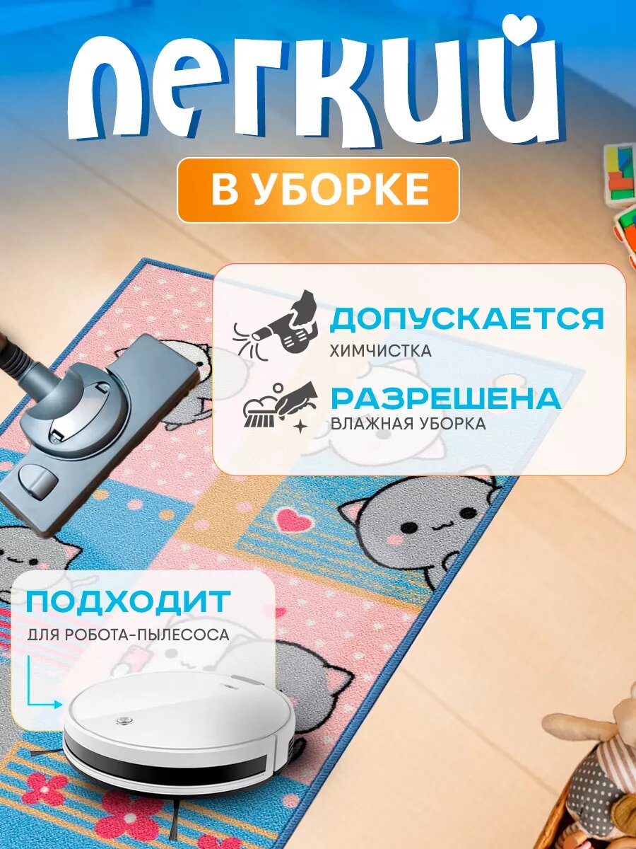 Ковер комнатный для детей, развивающий, гипоаллергенный, 100х150 см, серый котик