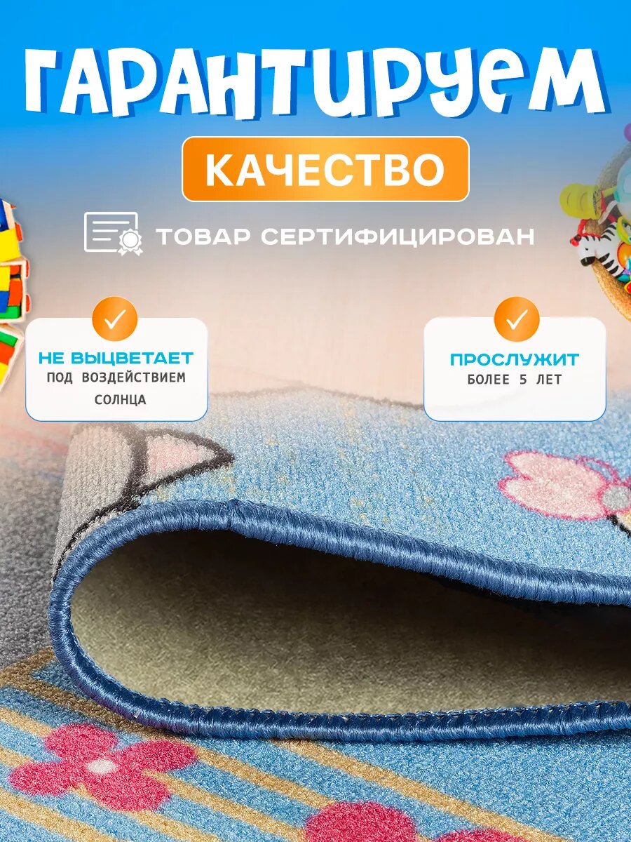 Ковер комнатный для детей, развивающий, гипоаллергенный, 100х150 см, голубой