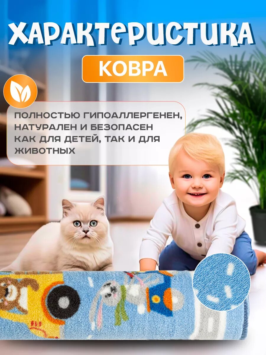 СохранитьКовер комнатный для детей, развивающий, гипоаллергенный, 100х150 см, голубой интересное: