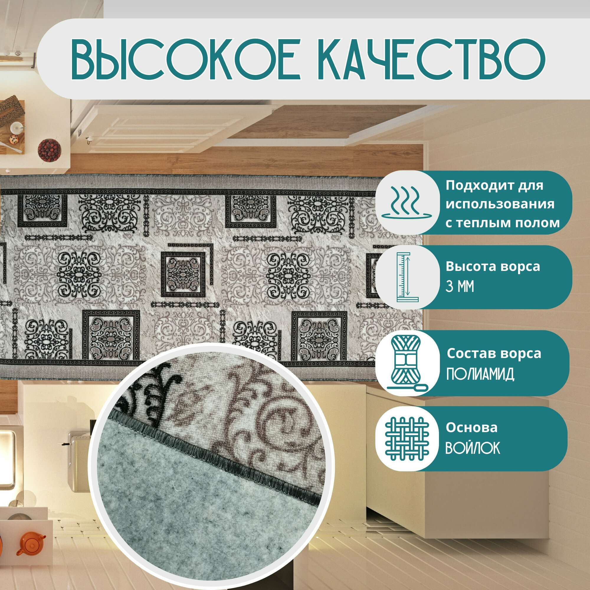 СохранитьКовровая дорожка на отрез без ворса "Узор серо-коричневый" 100х375 см + оверлок торцов интересное: