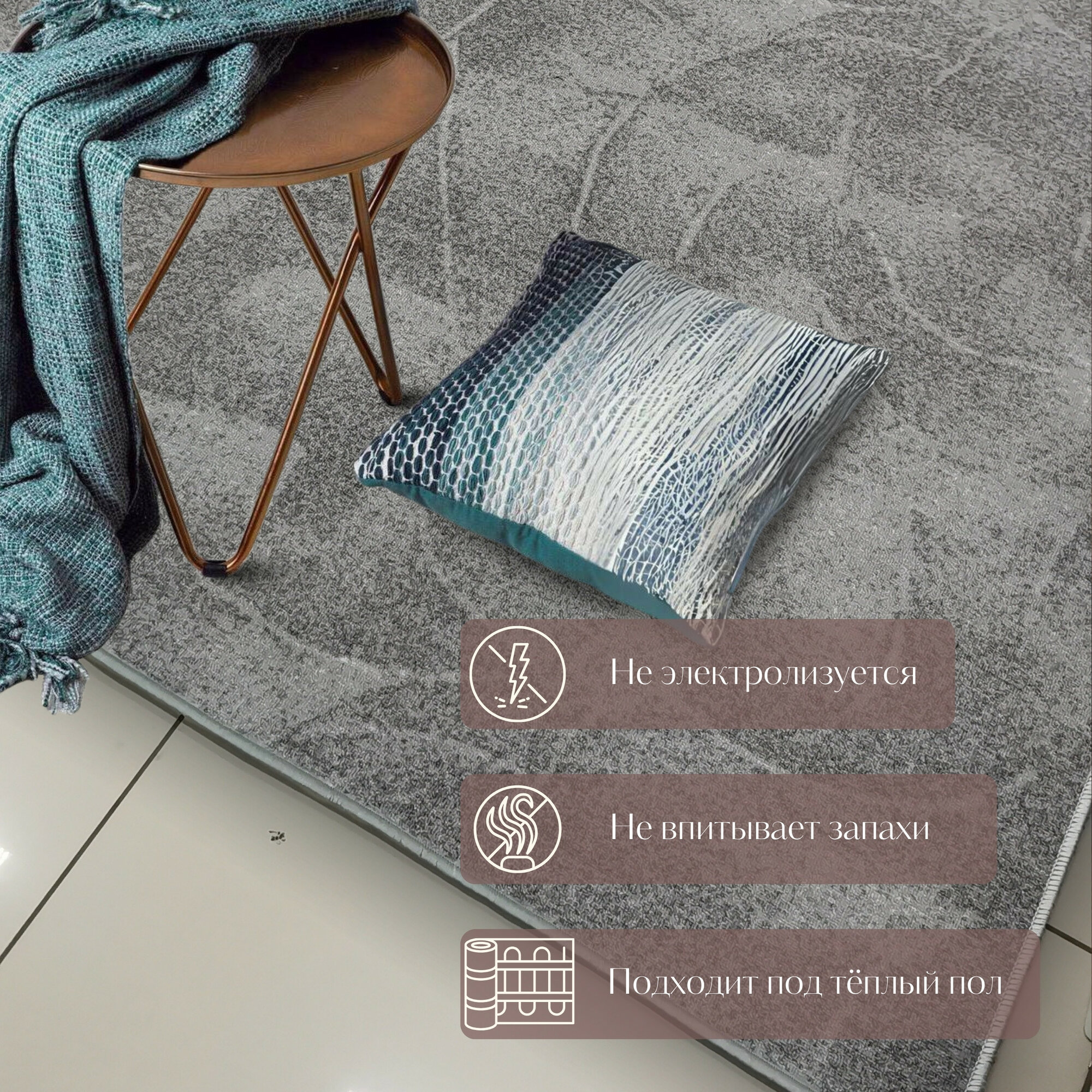 Безворсовый , противоскользящий коврик CarpetWorld "Мрамор" , полипропилен , микрофибра , прямоугольный , 100x60см.