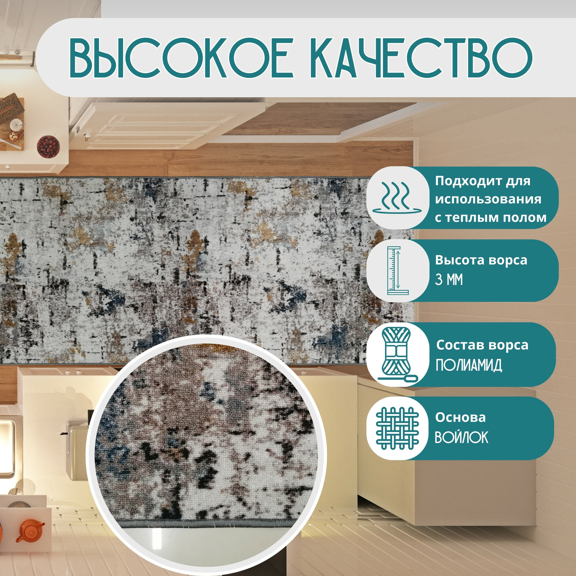 Безворсовый , противоскользящий коврик CarpetWorld "Мрамор" , полипропилен , микрофибра , прямоугольный , 100x60см.