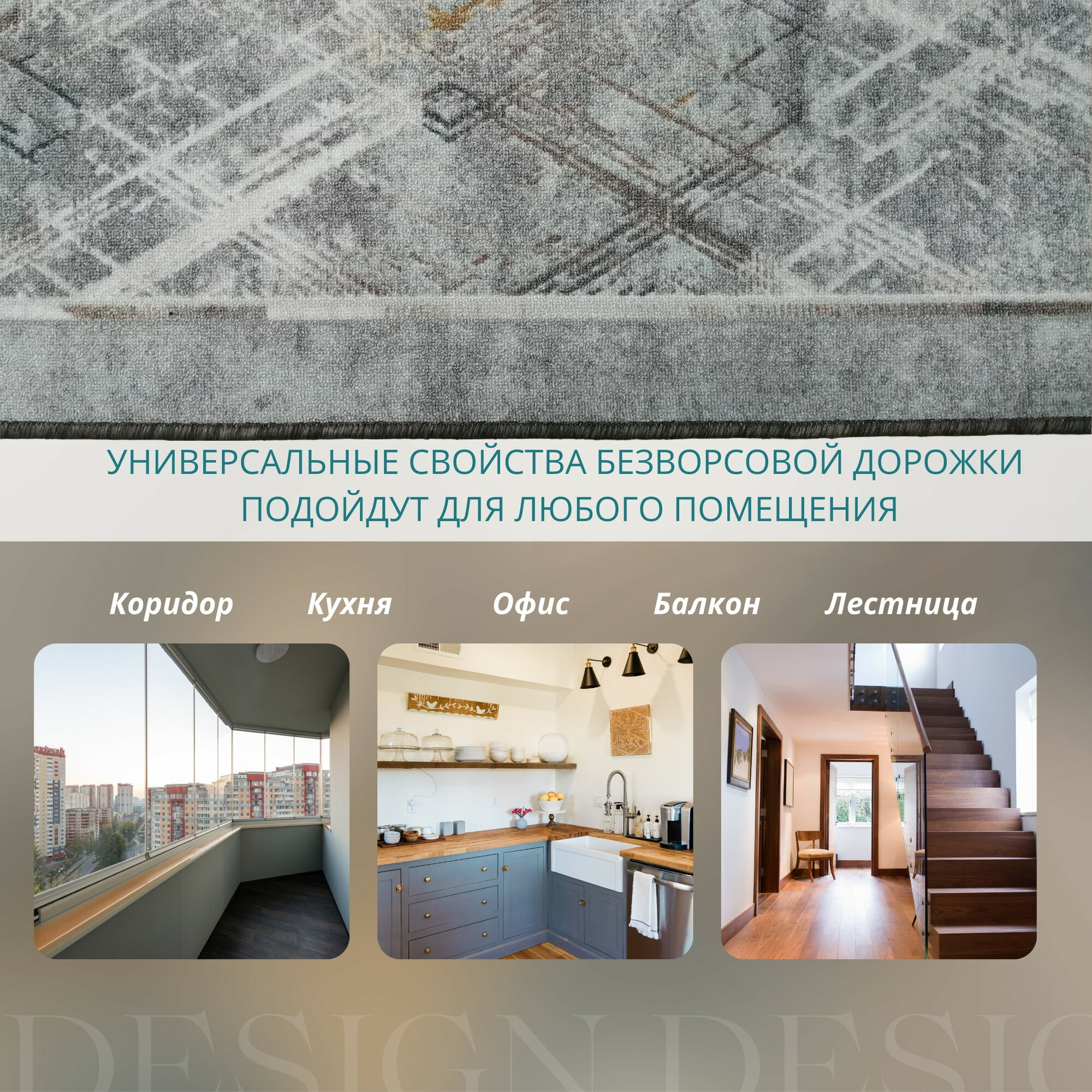 Ковровая дорожка на отрез без ворса "Стиль" 80х500 см + оверлок торцов
