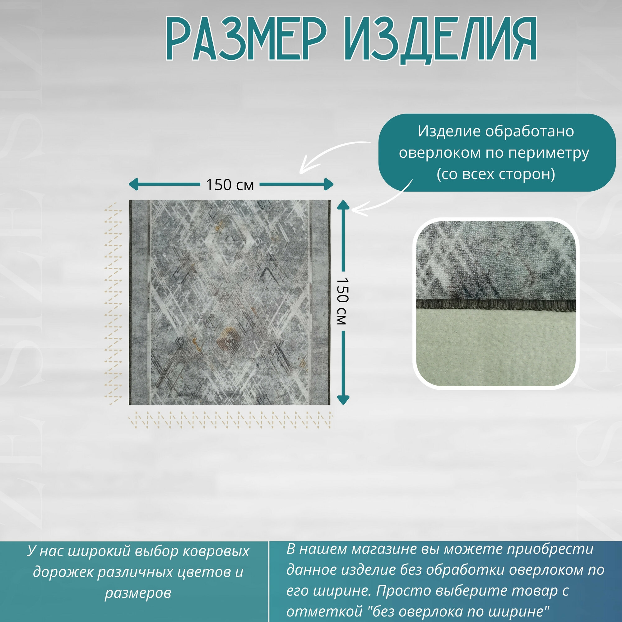 Ковровая дорожка на отрез без ворса "Стиль" 150х150 см + оверлок торцов