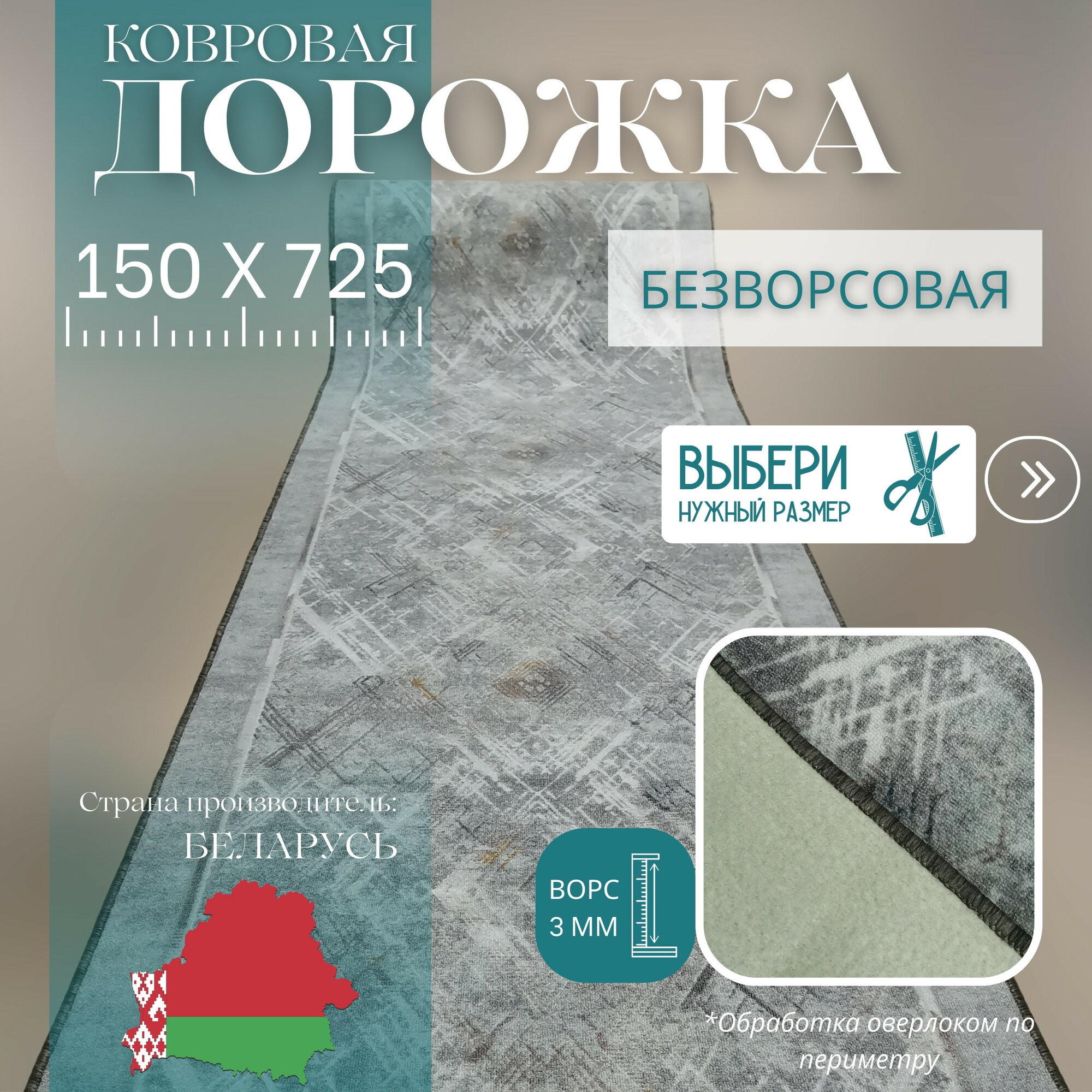 Ковровая дорожка на отрез без ворса "Стиль" 150х725 см + оверлок торцов