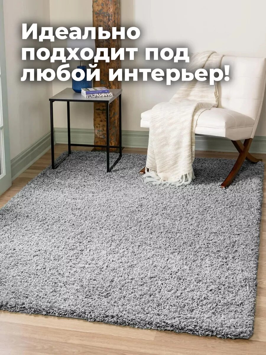 Ковер комнатный на пол Шегги, с высоким ворсом, 80х150 см, серый интересное:
