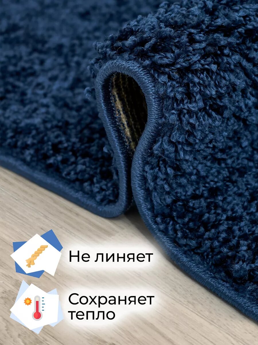 Ковер комнатный на пол Шегги, с высоким ворсом, 80х150 см, синий