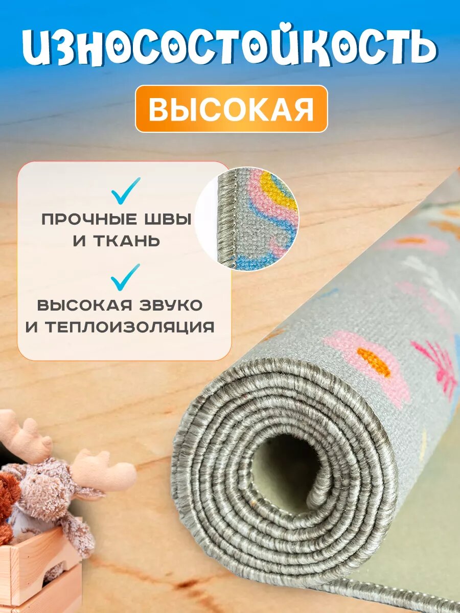 Ковер комнатный для детей, развивающий, гипоаллергенный, 200х300 см, серый