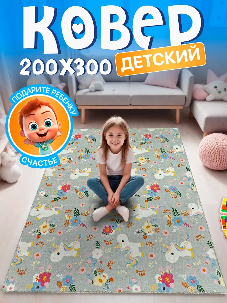 Купить Ковер комнатный для детей, развивающий, гипоаллергенный, 200х300 см, единороги