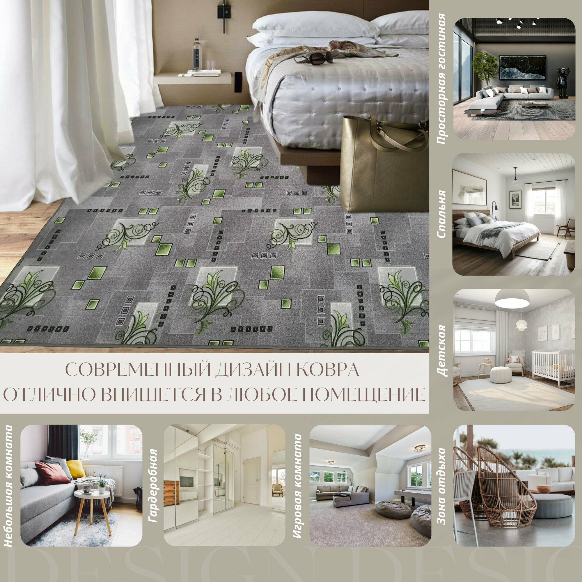 СохранитьКовер безворсовой "Узор", зелено-серый на войлоке. Размер 150х250 см интересное: