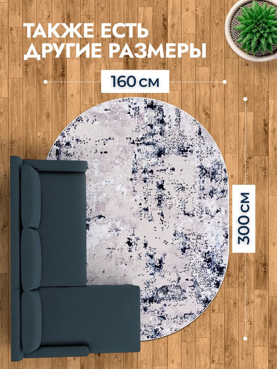 Купить Ковер овальный, противоскользящее покрытие, гипоаллергенный, 160х300 см, сине-бежевый