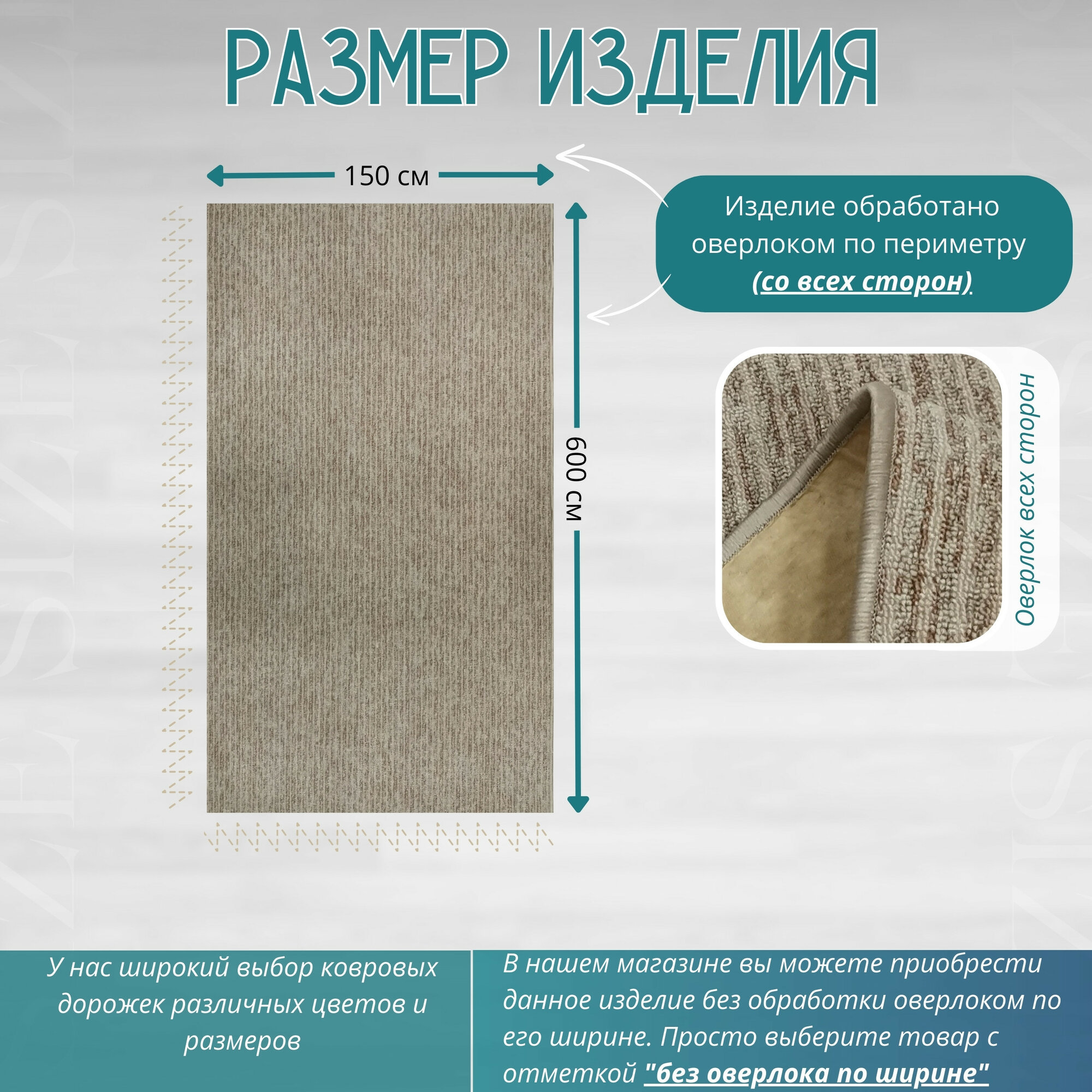 Ковровая дорожка ворсовая "STEP", бежевая 150х500 см + оверлок торцов