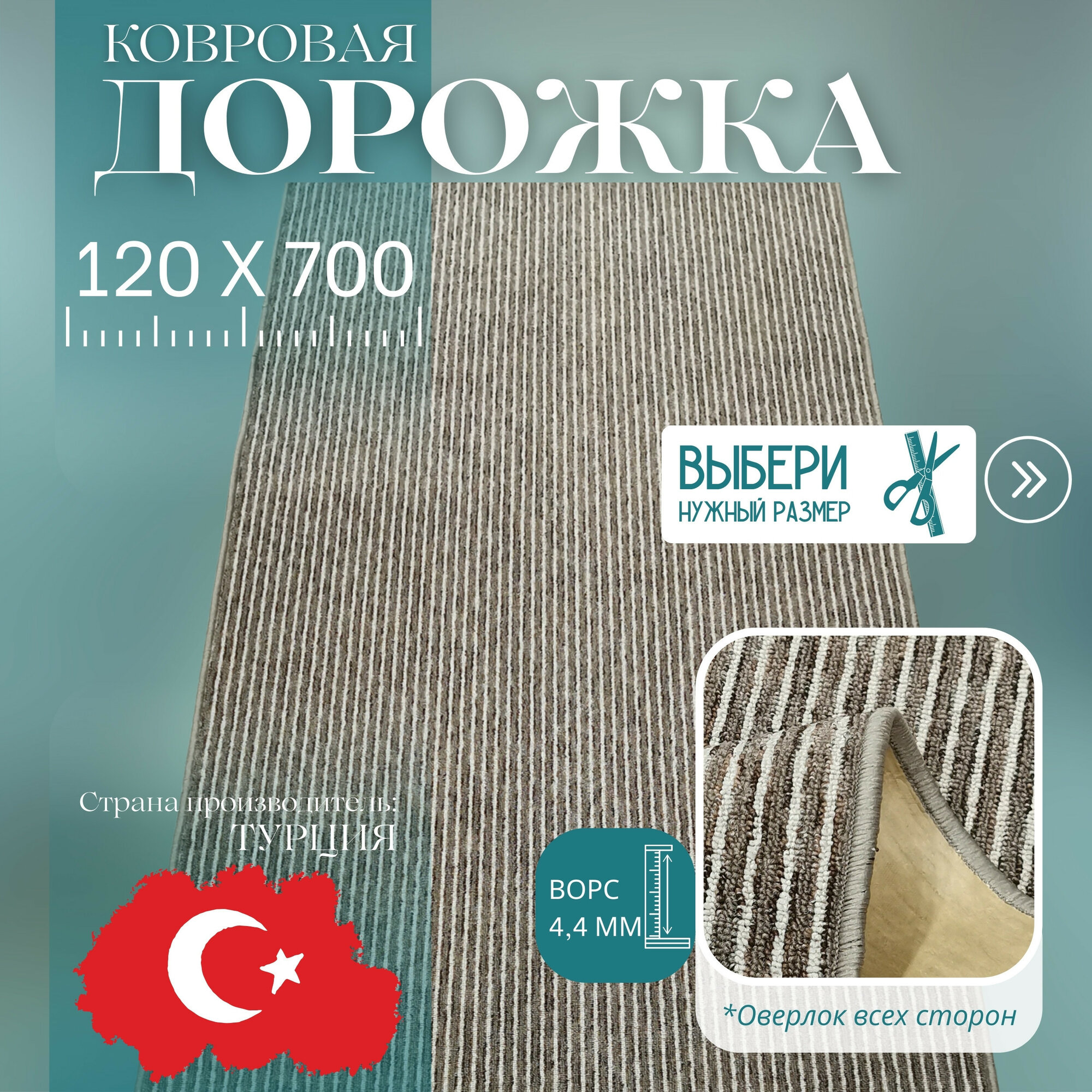 Ковровая дорожка ворсовая "STEP", коричневая 120х650 см + оверлок торцов