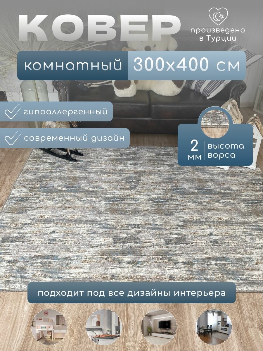 Ковер комнатный Allures, на пол, 300х450 см, синий, серый, белый