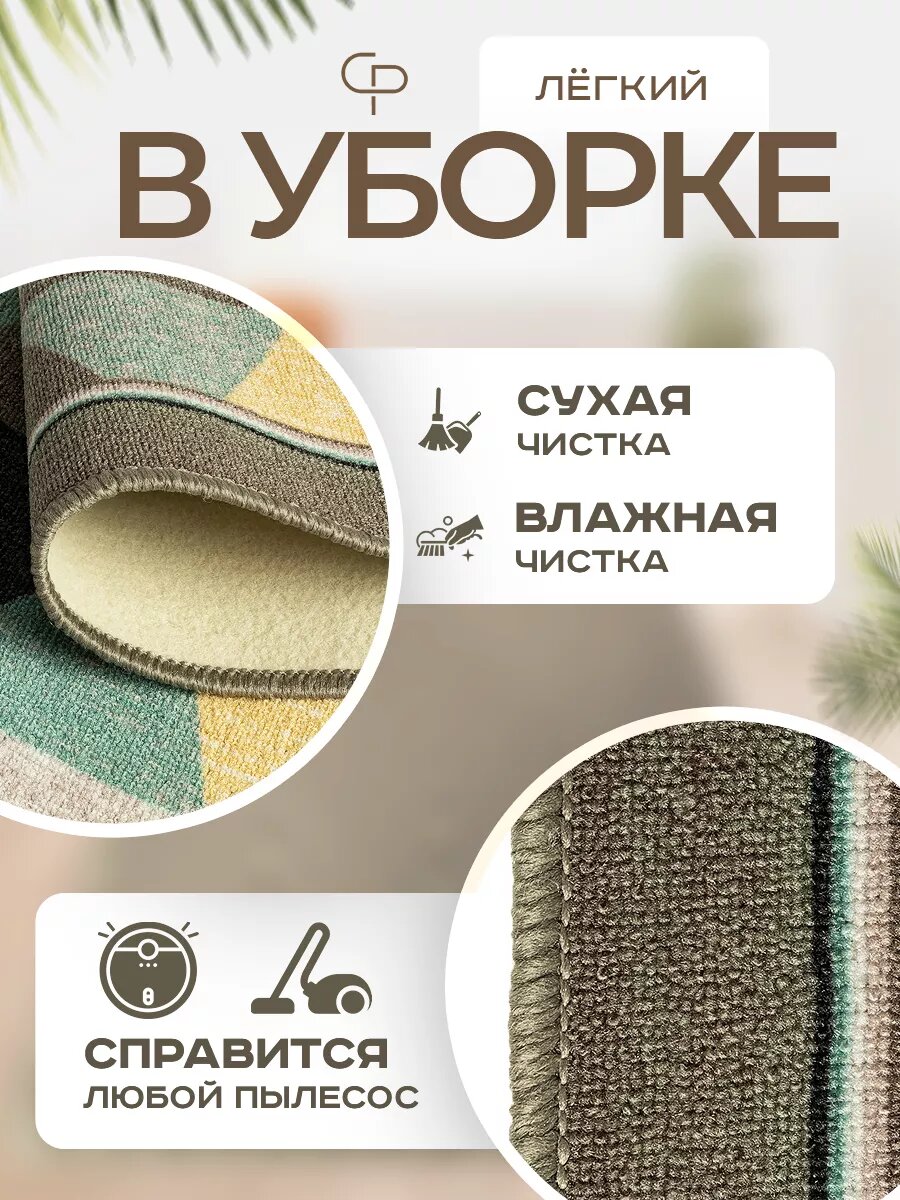 Ковер комнатный, износоустойчивый, овальный, 100х150 см, желтый/зеленый интересное: