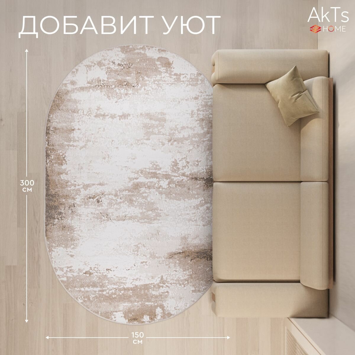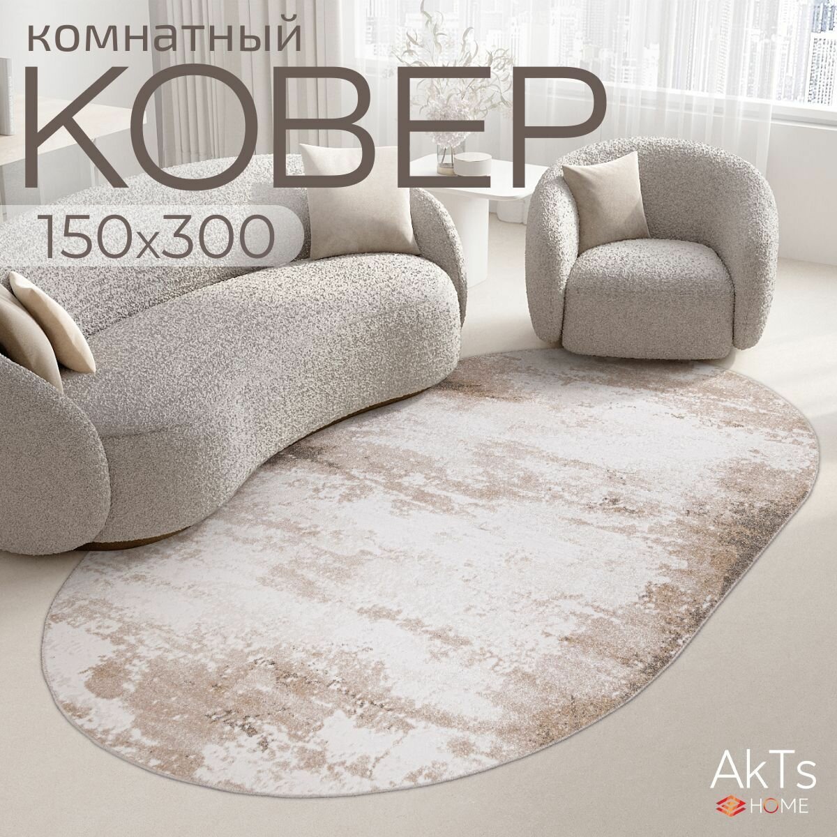 Ковер на пол AkTs комнатный 150 на 300 овальный в гостиную, зал, спальню, кухню прихожую, кабинет, комнату интересное: